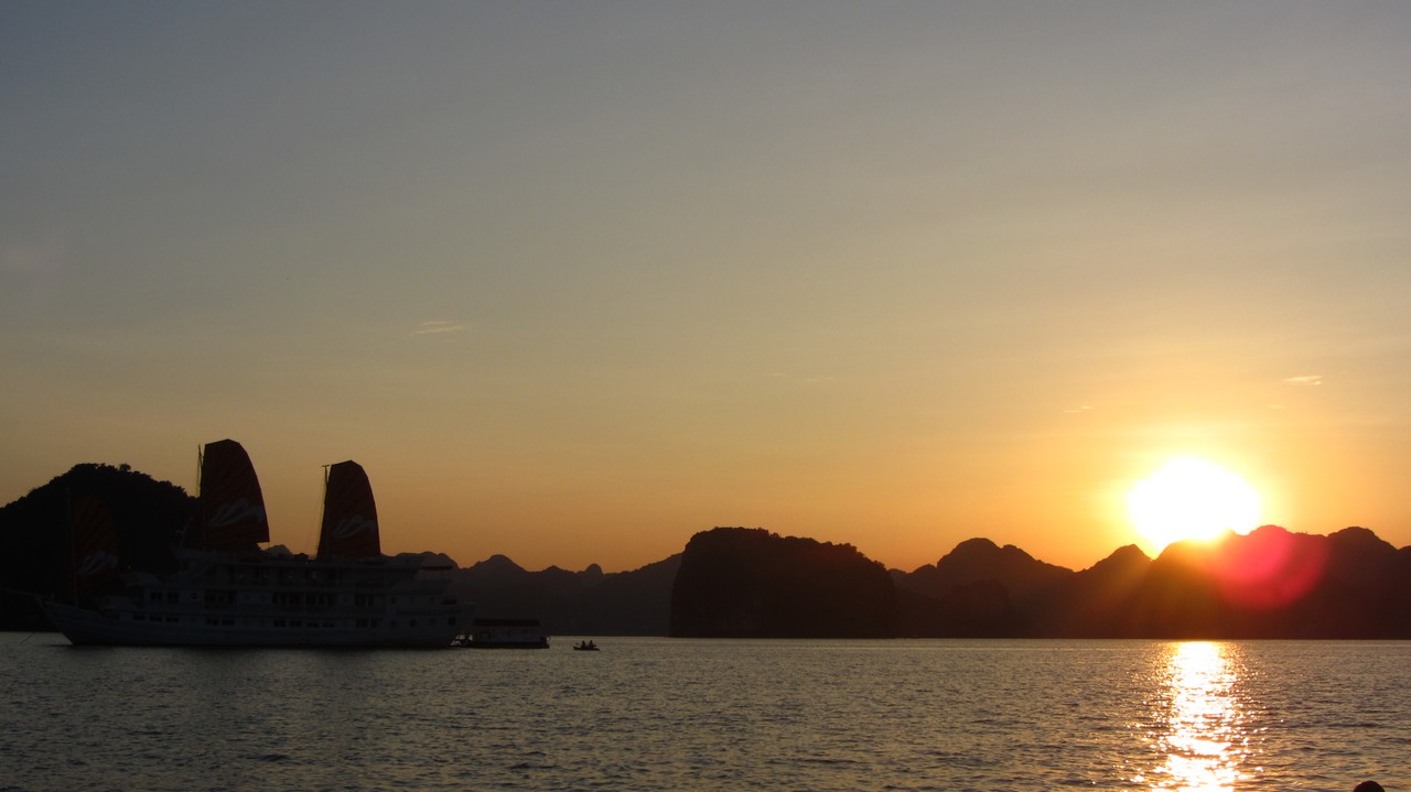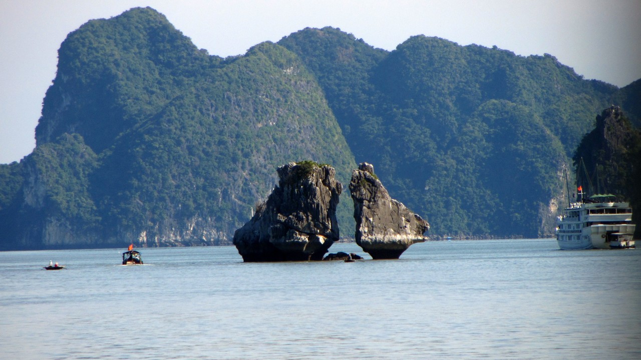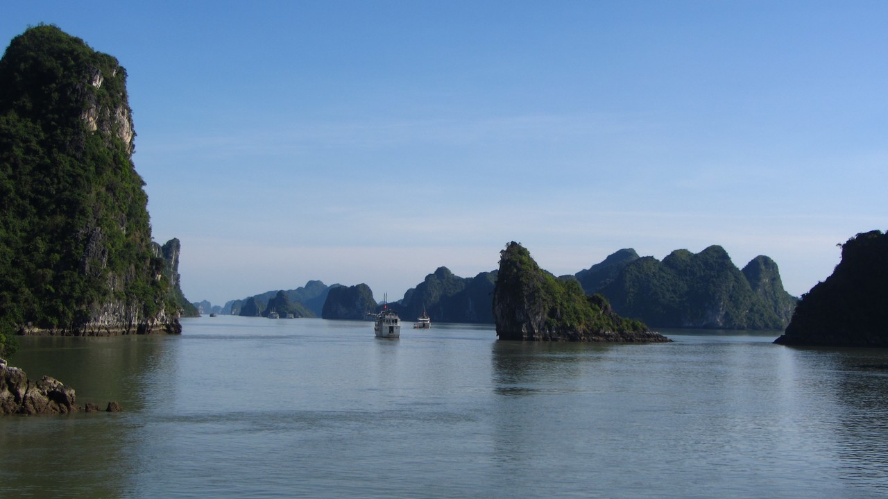 Kurz nach acht wurde ich von Alova Gold abgeholt und es ging in einem Minibus in Richtung Osten. Die ganze Fahrt dauerte vier Stunden, mit einem kurzen Stopp auf halber Strecke bei einem riesigen Fabrikladen. Im Hafen endlich angekommen, sind wir auf ein kleines Beiboot und dann auf unser großes Schiff gegangen. Wir sind 15 Leute (aus Deutschland, Australien, USA, Canada und Russland) und nun zwei Tage in der Bucht, die Unesco Weltnaturerbe und auch eines der 7 Weltnaturwunder ist, zusammen unterwegs.