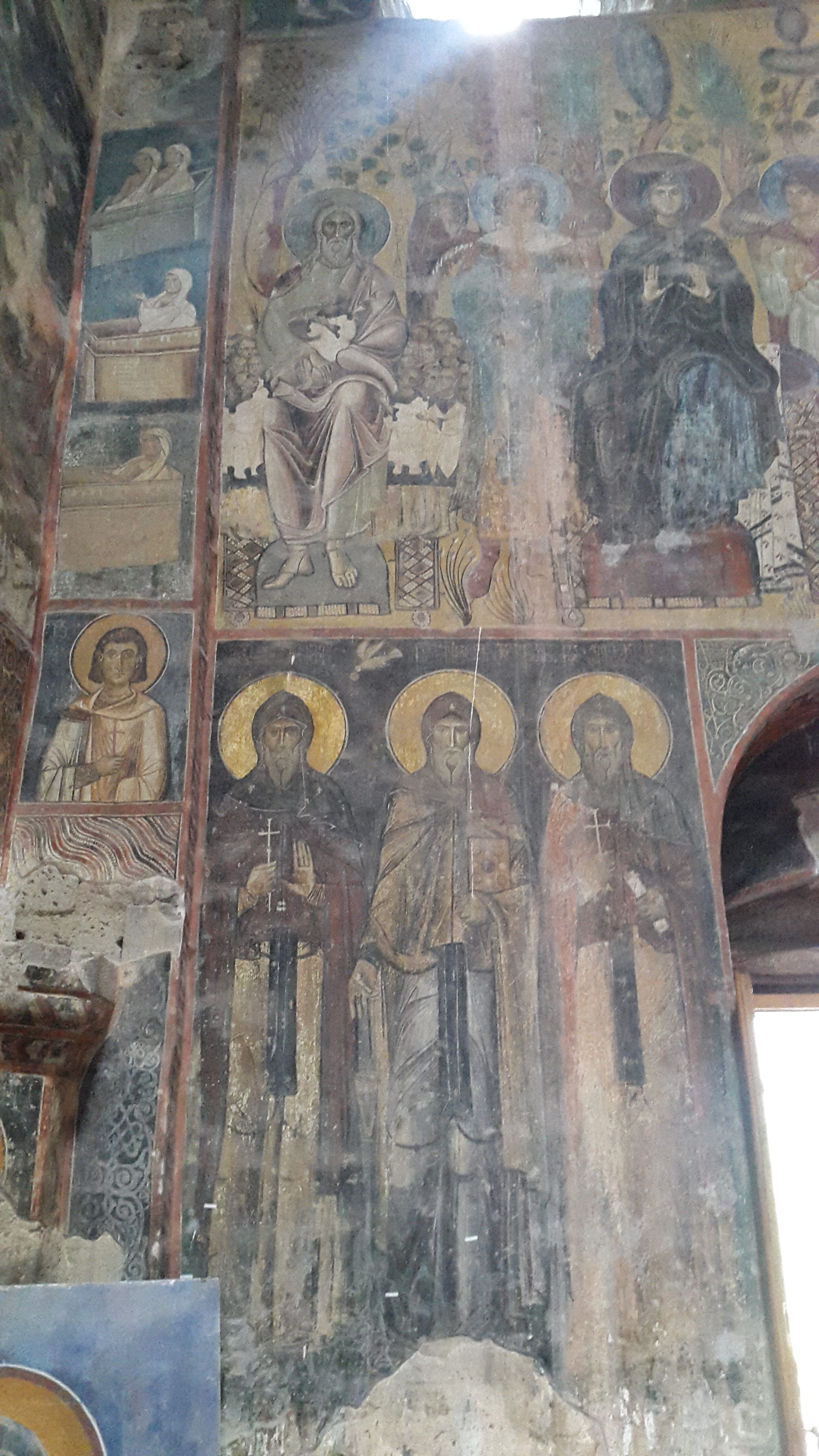 In Peja hingegen sind die Sicherheitsvorkehrungen nicht so sichtbar. Nachdem wir uns registrierten konnten wir auch dieses Kloster besichtigen. Es ist nicht so schick renoviert wie Decan, aber ebenfalls besuchenswert. Die Kirche ist in drei Separate Schiffe unterteilt und wie bei orthodoxen Kirchen üblich, von unten bis oben bunt bemalt. Der Eintritt ist kostenlos, aber man kann für 2 Euro einen Audioführer leihen. Das Kloster liegt von Peja ein Stück westlich an der M9.