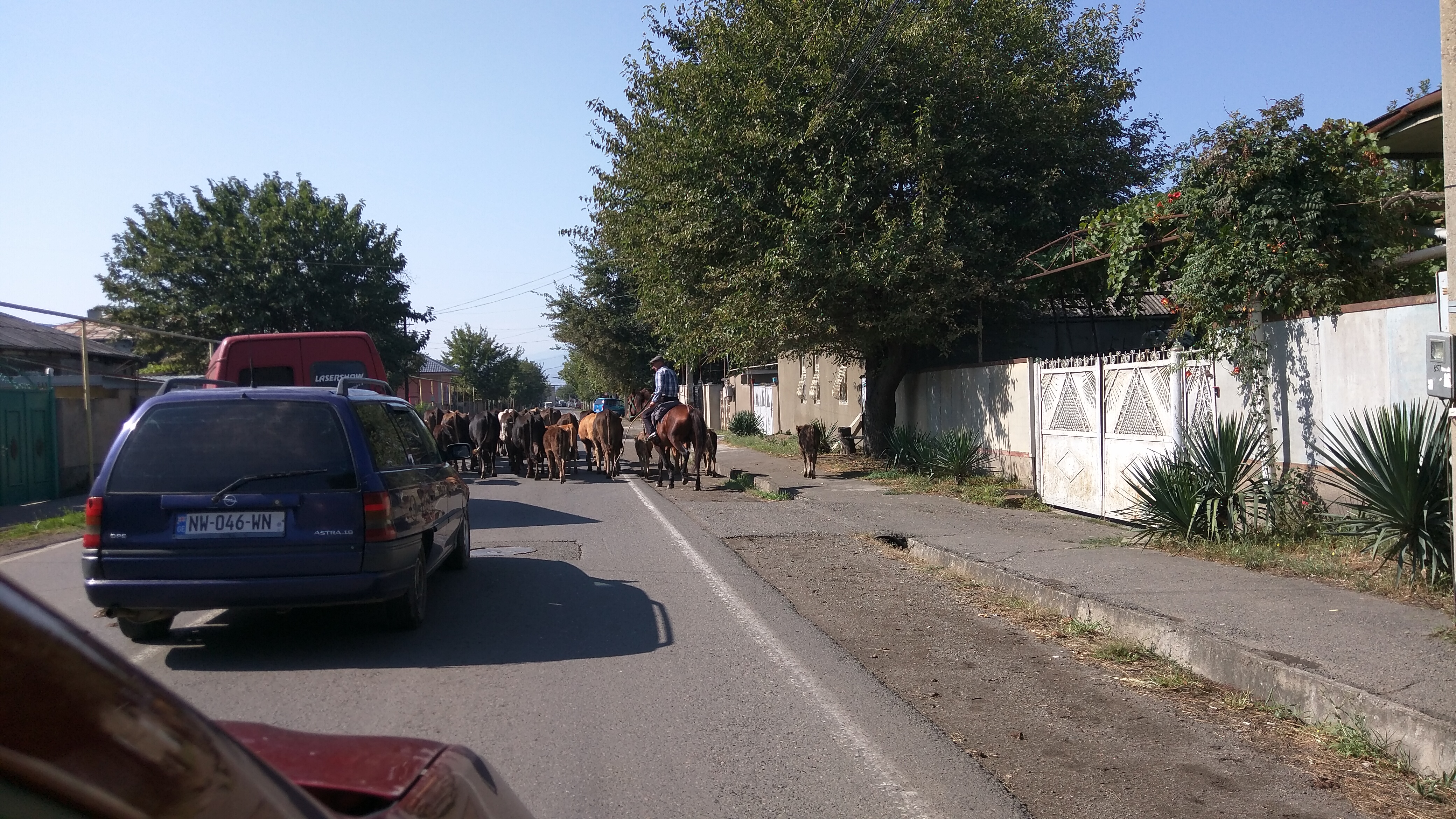 Nun machten wir uns wieder auf den Rückweg. Bis Tiflis lagen ja noch an die dreieinhalb Stunden vor uns. Die Ausreise war noch schneller als die Einreise. Das „wichtige Dokument“ sammelte einer vor der Grenze schon ein und es interessierte nicht wirklich. Stempel in den Pass und schon konnten wir weiter.