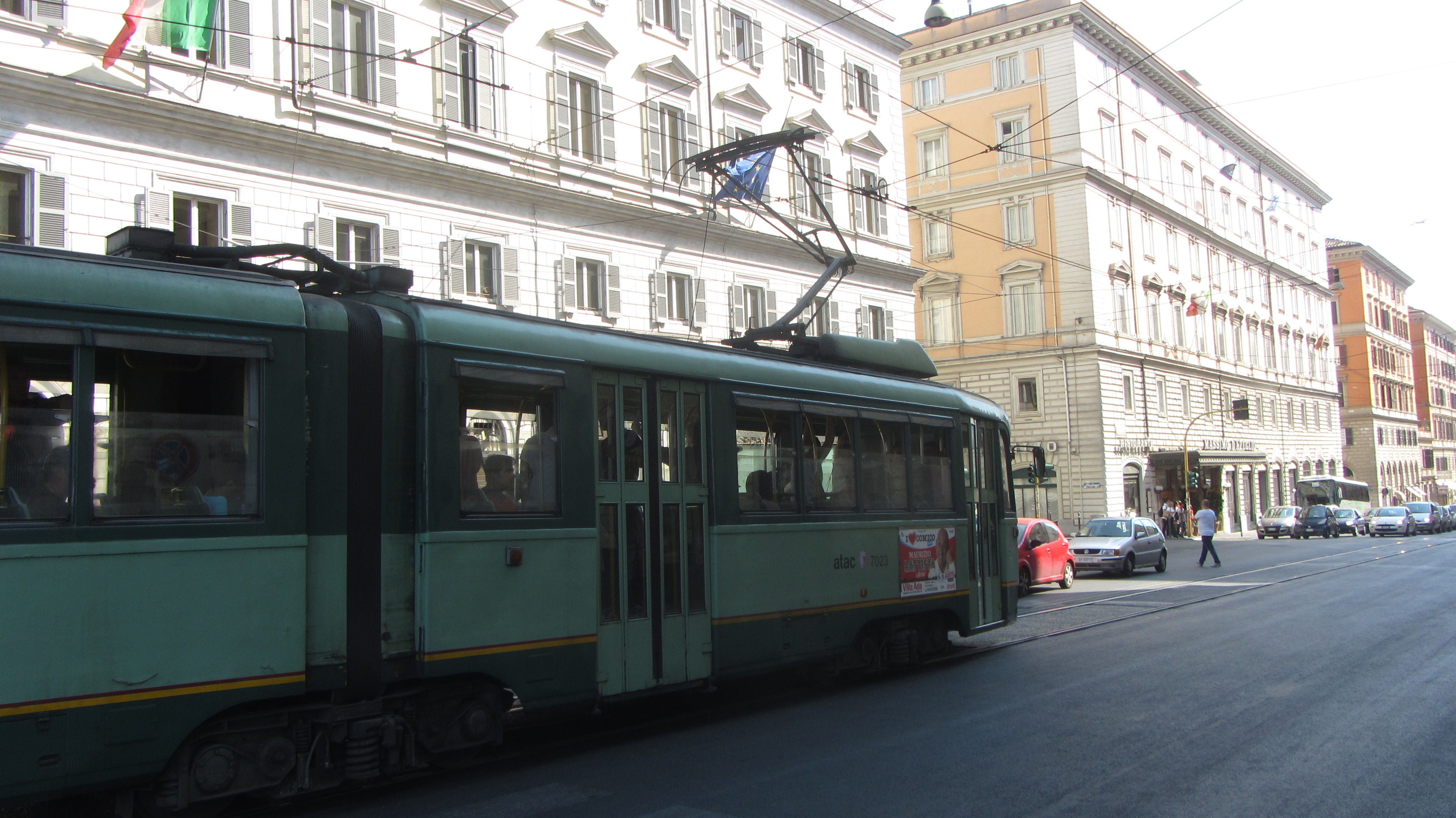 Unser Flieger war pünktlich gelandet und so waren wir relativ schnell am Bahnhof des Leonardo Express. Auch das Ticket bekamen wir am Automaten ohne Probleme. 14 Euro kostet die einfache Fahrt bis nach Termini. Es gibt auch andere Möglichkeiten wie eine Art S-Bahn oder Shuttlebusse, die billiger sind, aber mit dem Leonardo Express ist man innerhalb von 30 Minuten ohne Zwischenstopps mitten in der Stadt. Der Preis ist in Ordnung für neue und saubere Züge.