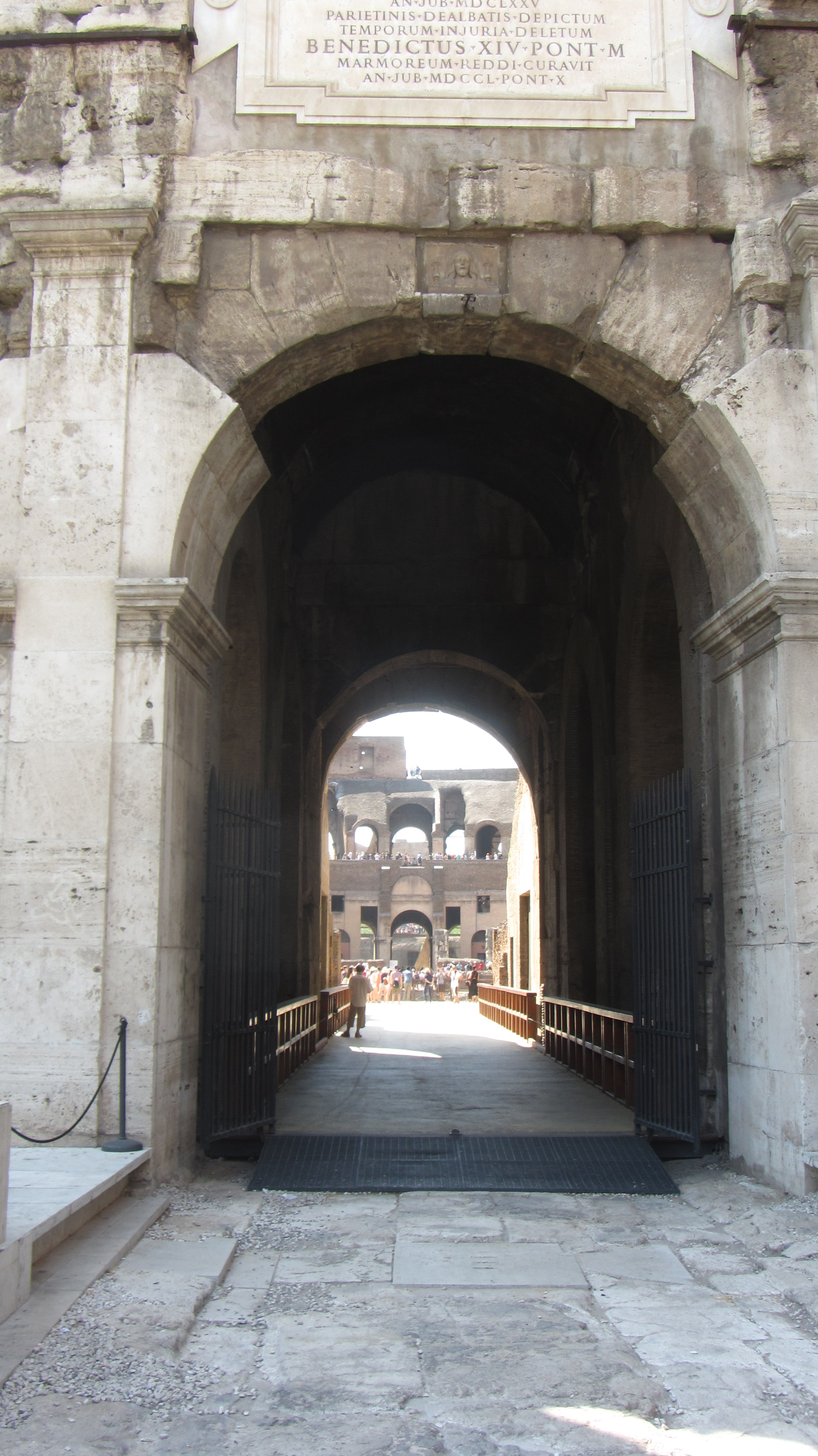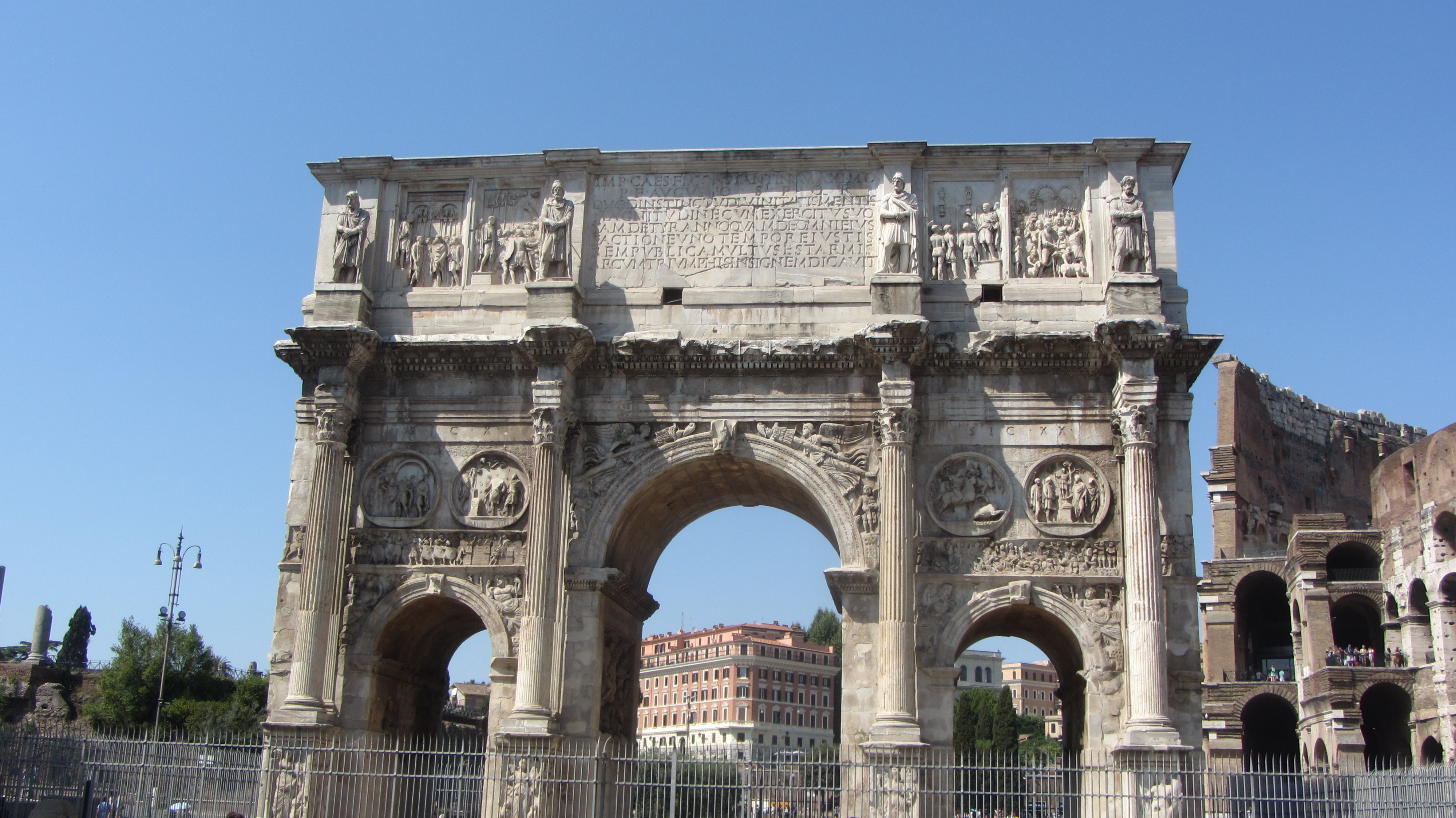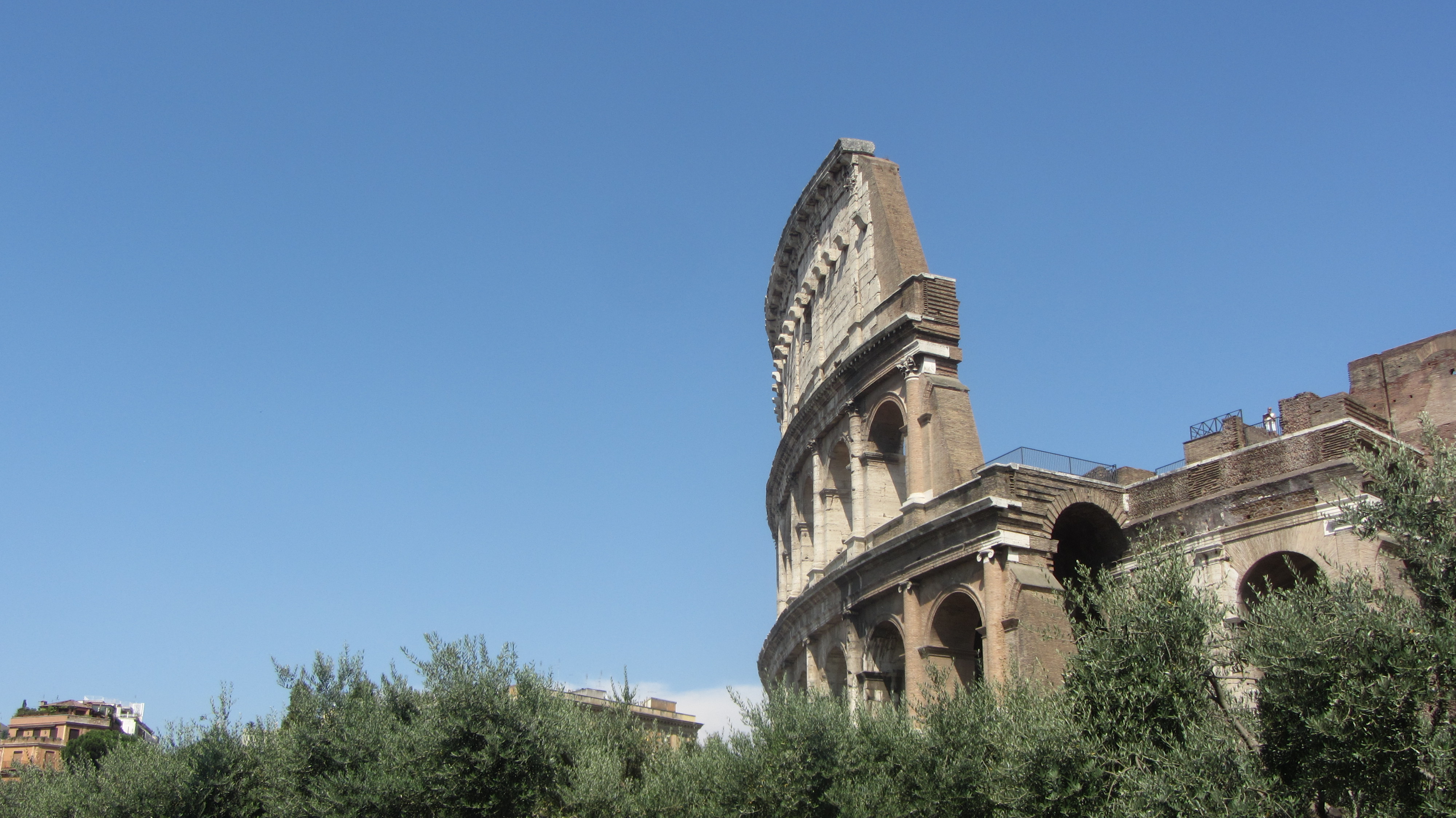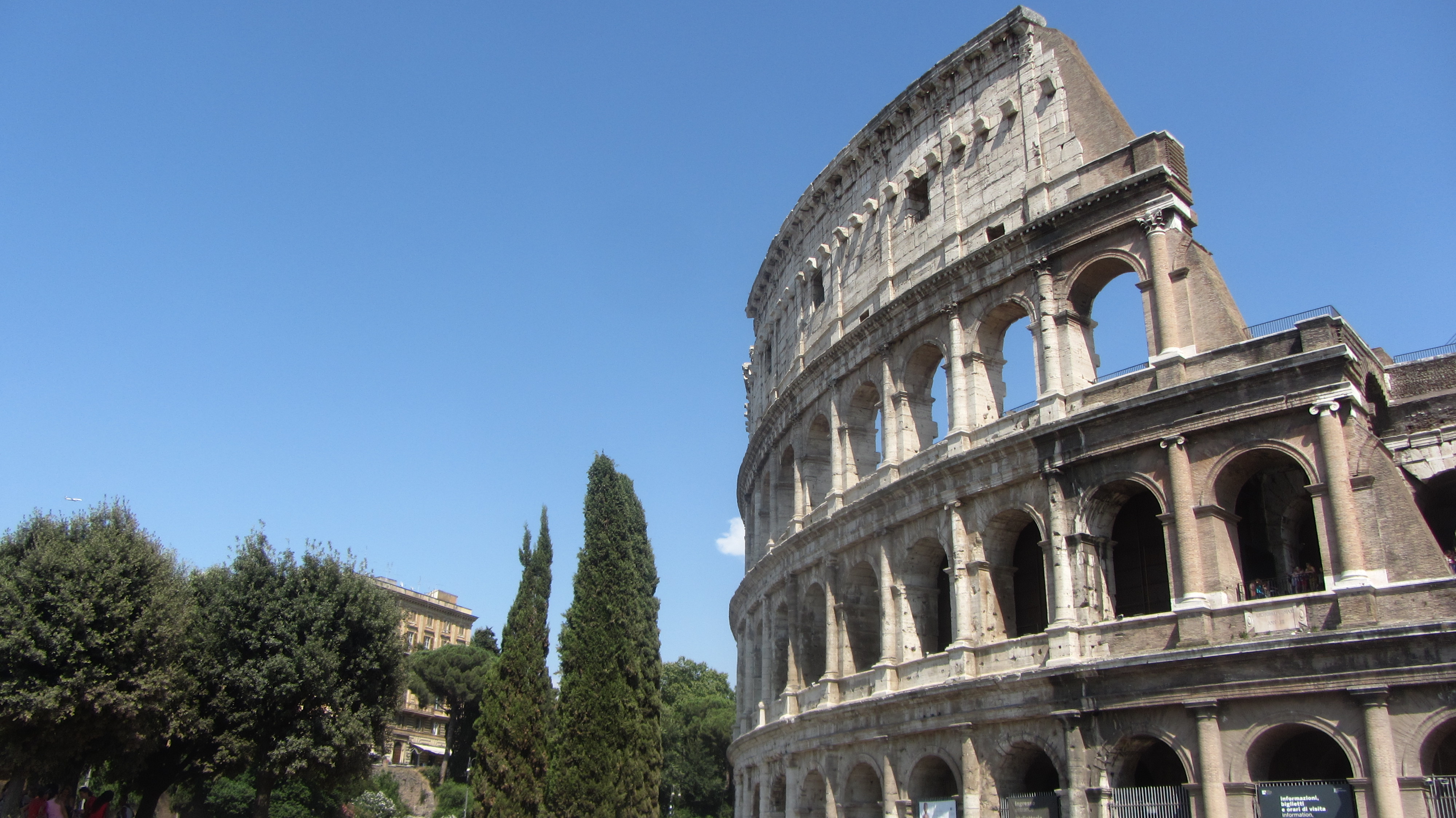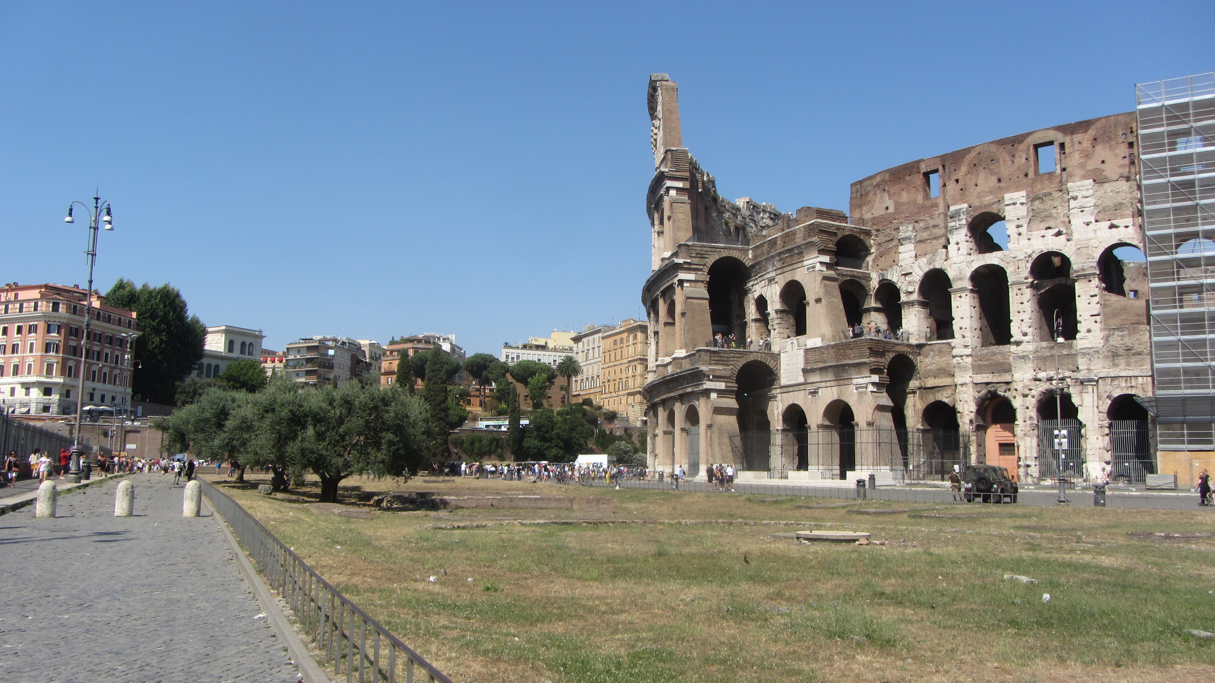 So standen wir schließlich um 15 Uhr vor dem Bahnhof und suchten den Zugang zur Metro. Ein wenig chaotisch, aber nach etwas suchen fanden wir auch den richtigen Weg. Wir wollten heute zum Kolosseum und eventuell noch ein paar andere Sehenswürdigkeiten in der Nähe besichtigen. Die Metro brachte uns zwar auch direkt zu unserem Ziel, doch es war unglaublich heiß und stickig in den Zügen. Aber draussen war es auch nicht besser: An die 40 Grad erwarteten uns an dem Wahrzeichen Roms. Wir gingen einmal herum -was bei der Größe auch eine Stunde dauert- liefen noch etwas am Forum Romanum vorbei und entschieden uns dann doch zum Bahnhof zurückzufahren, da man in der Hitze einfach davon floss.