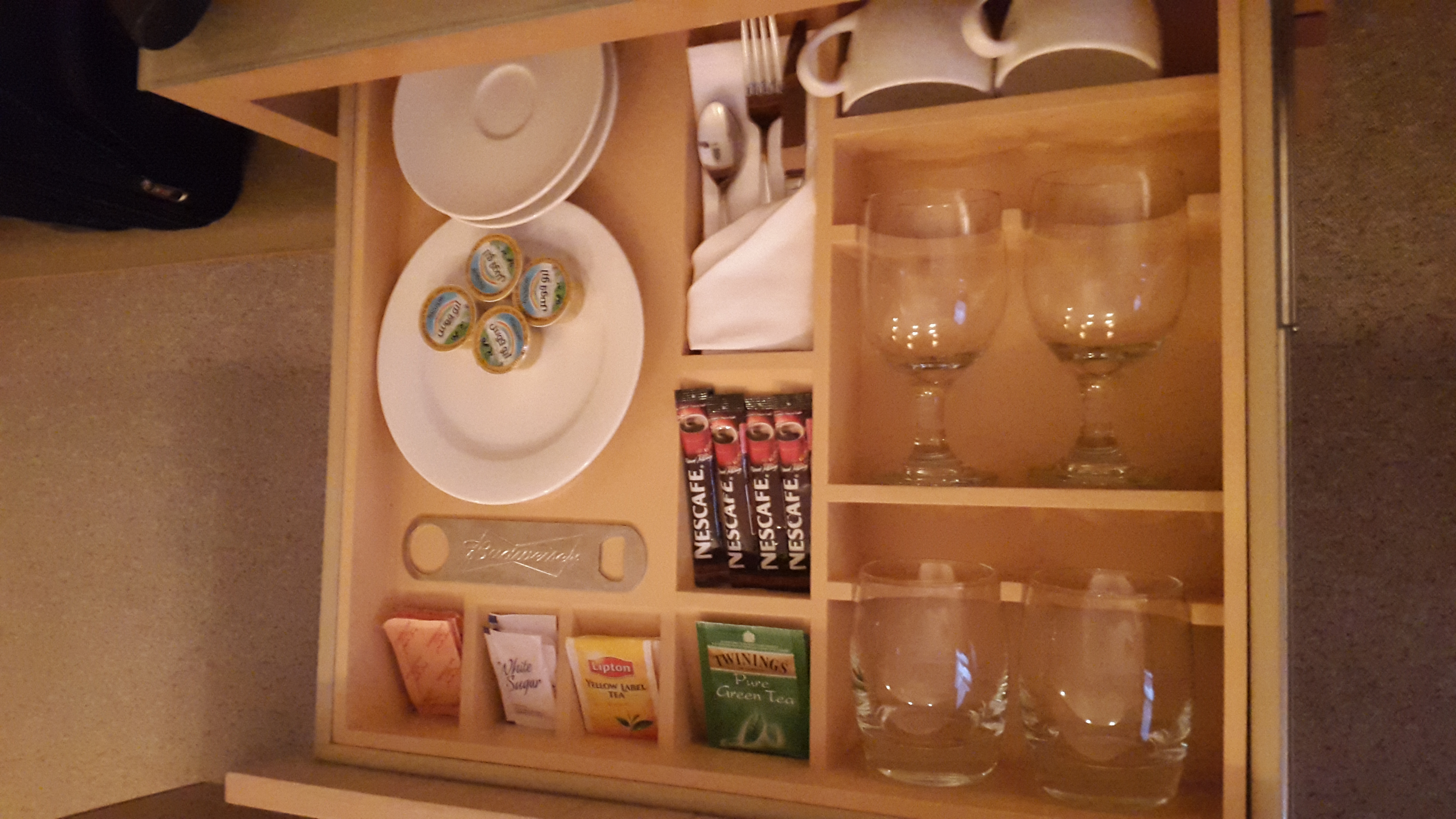 In der Nähe von Juffair gelegen ist es etwa 20 Minuten vom Flughafen entfernt. Dadurch das der Transfer kostenlos ist, spart man sich etwa 7 Dinar je Fahrt. Das hatte auch alles absolut problemlos geklappt. Am Ausgang wartete der Fahrer mit einem Schild und so ging es direkt zum Hotel. Zur Erfrischung gab es Getränke und kühle Handtücher während der Fahrt.