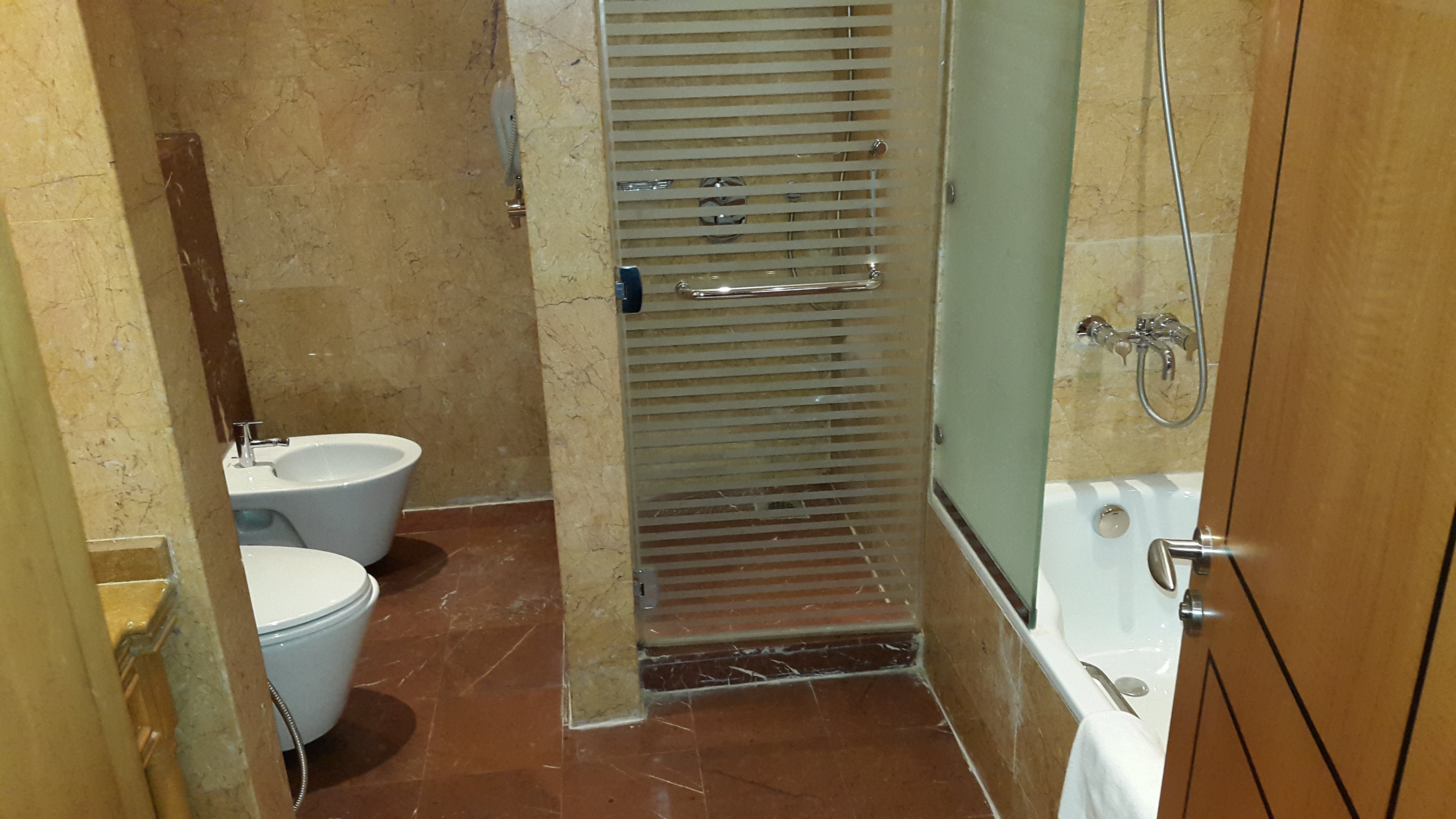 Die Zimmer sind sehr groß. Laut Beschreibung 56m² für ein Standardzimmer. Ich war wirklich überrascht von der tollen Ausstattung. Alles sah sehr gepflegt aus und es fehlte an nichts. Ebenso groß war auch das Bad. Dusche, Badewanne, Bidet… Was will man mehr?