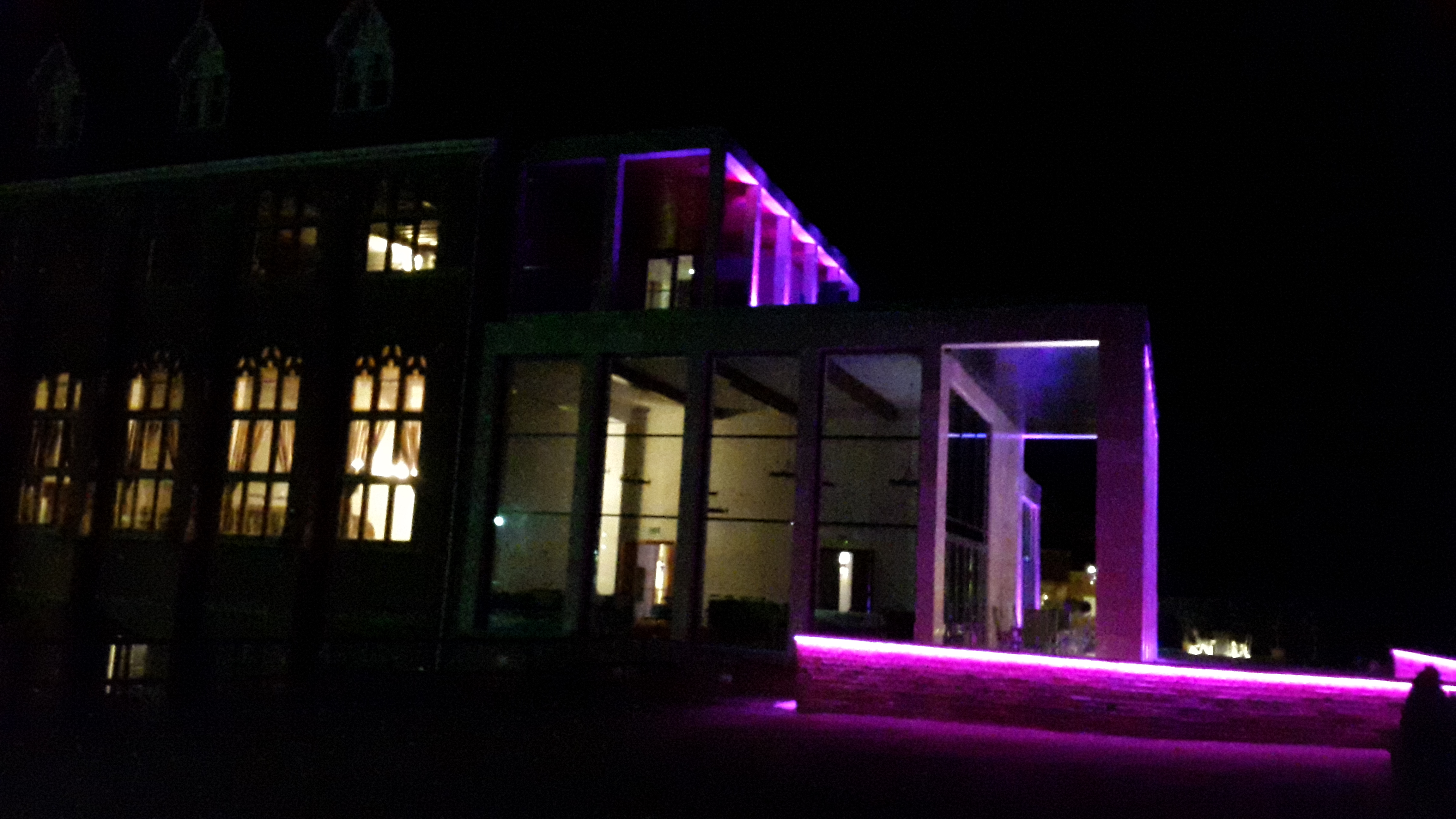 Schon die Auffahrt ist beeindruckend und besonders nachts sehr schön, mit beleuchteten Bäumen und einem lila angestrahlten Eingangsbereich.