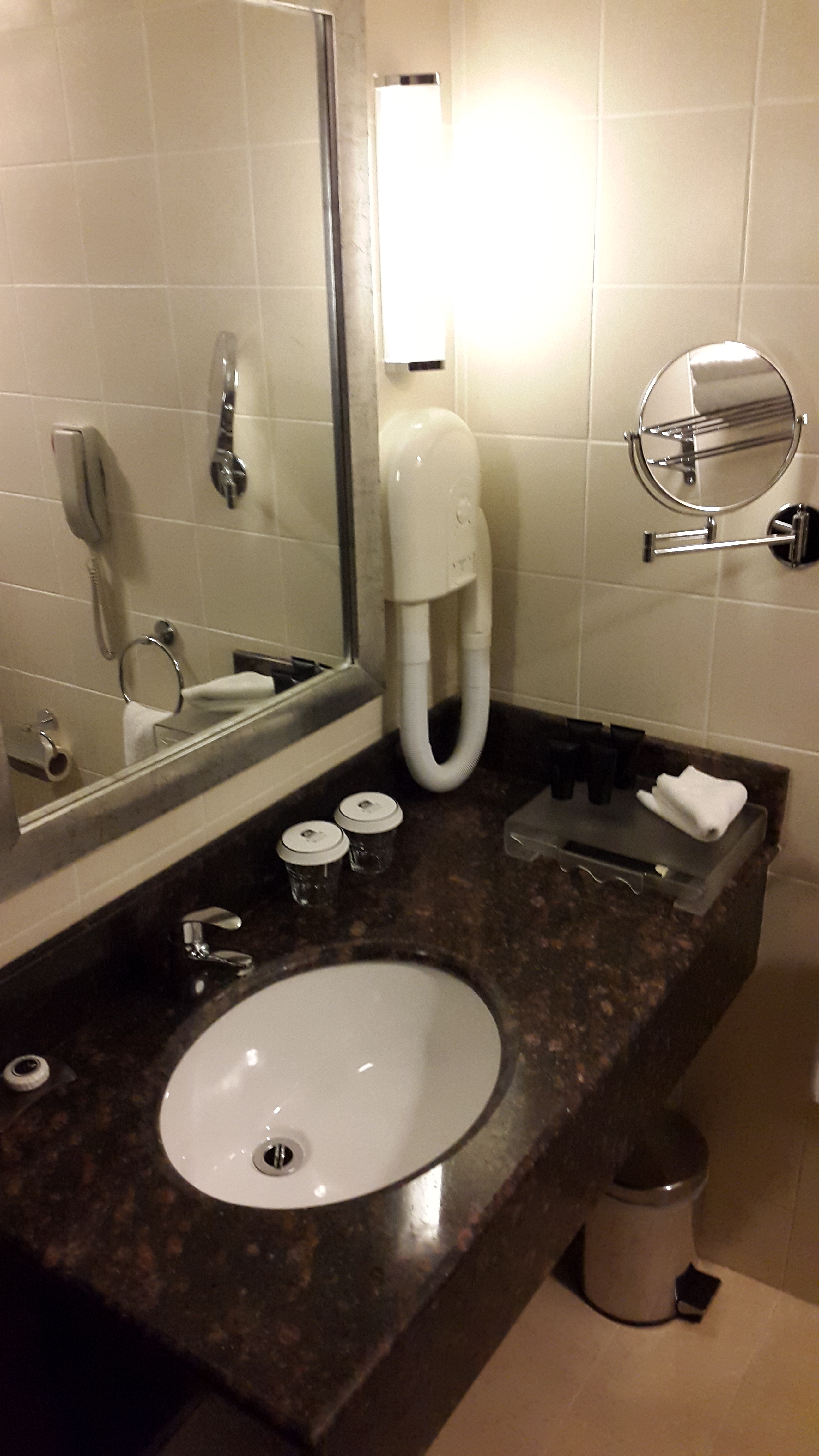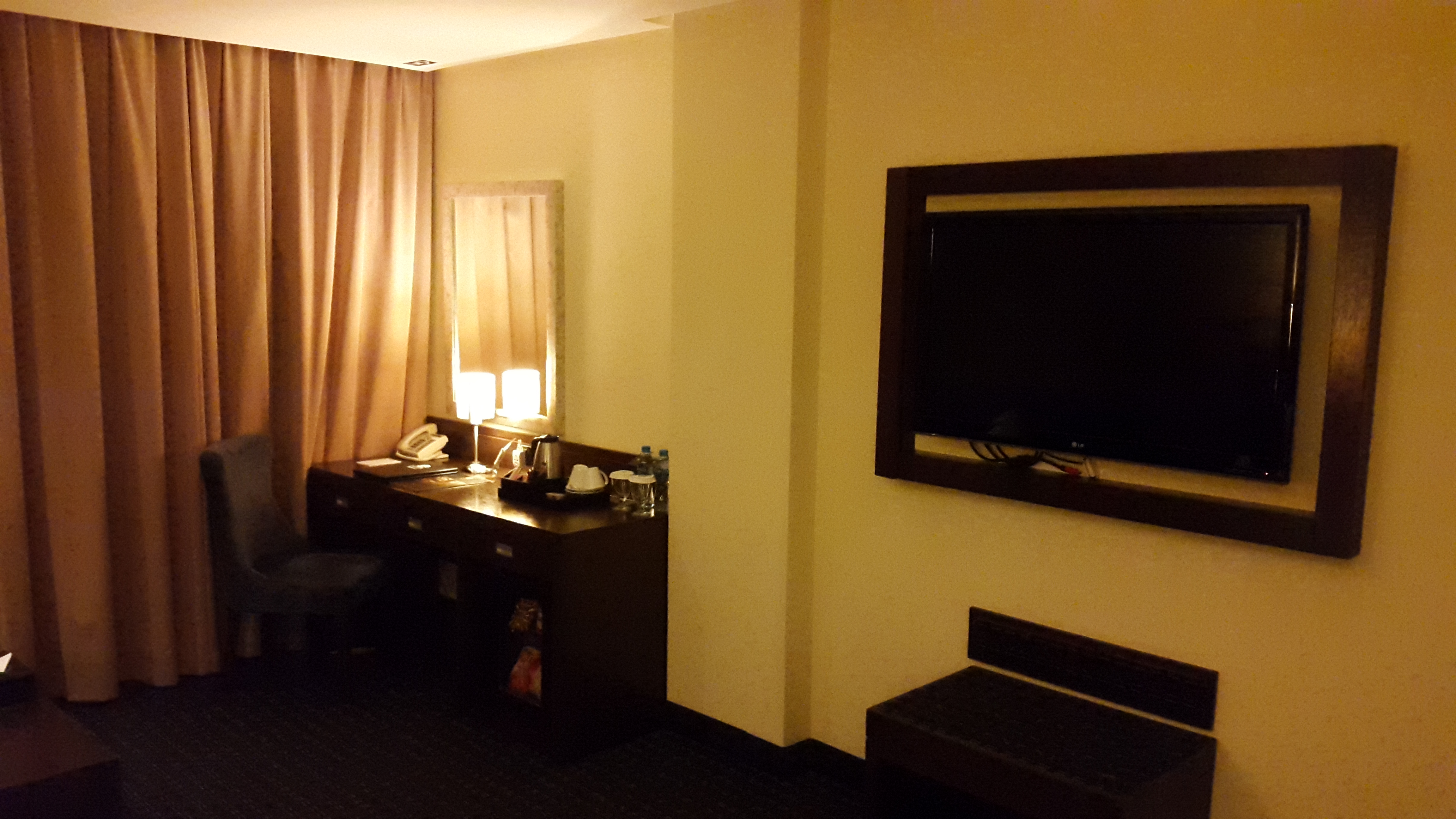Das Zimmer machte auch einen guten Eindruck und bietet eigentlich alles was man von einem vier Sterne Hotel erwartet. Was jedoch unglaublich störte und ich leider erst später merkte war ein lautes Brummen, das selbst das Bett vibrieren ließ. Ich nehme an, es kommt von Generatoren auf dem Dach, die nicht ordentlich installiert wurden. So war an Ruhe nicht zu denken.