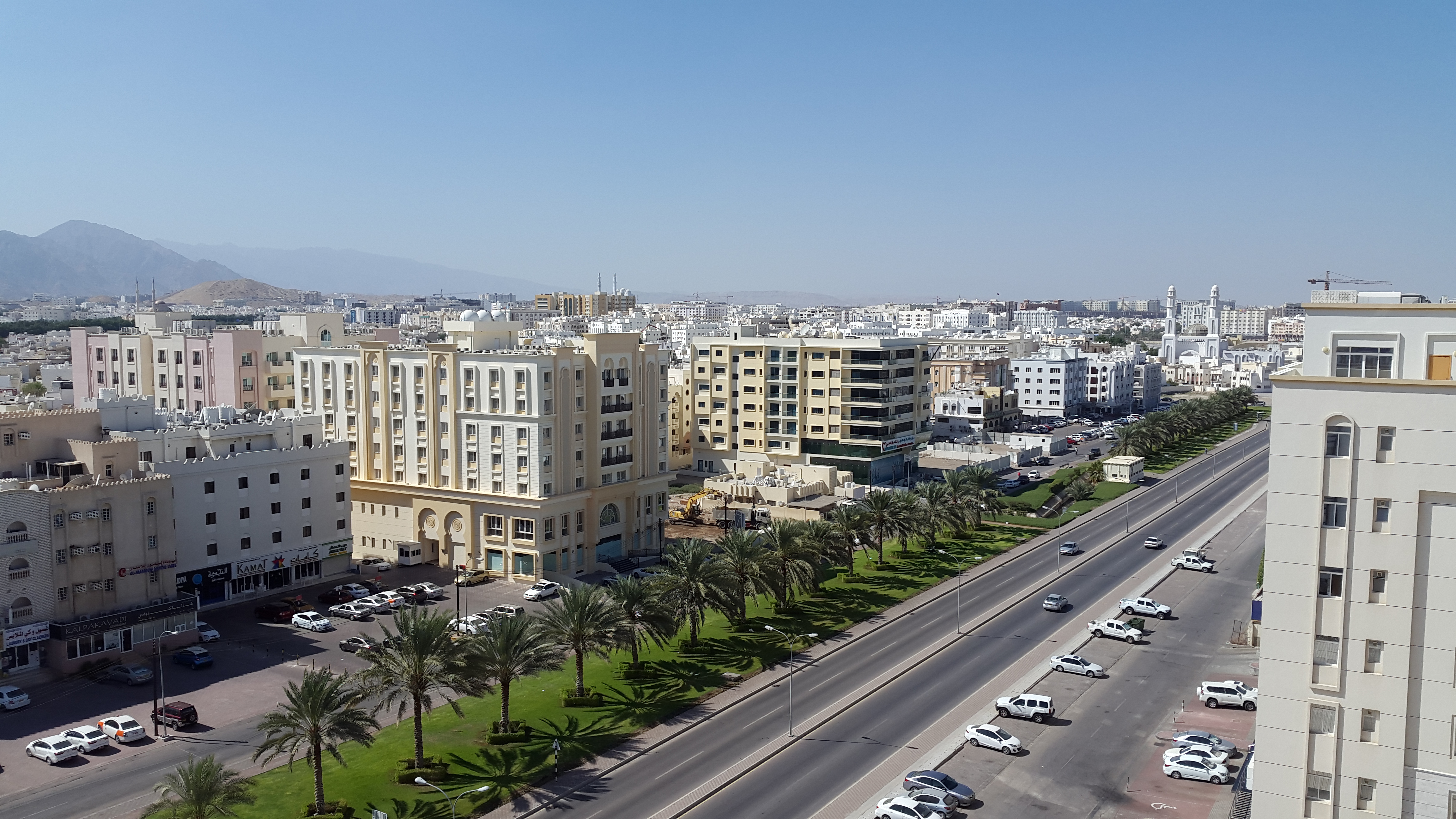 Nun die Lage des Hotels ist nicht so toll, wenn man kein Auto hat. Parkplätze gäbe es zwar zur Genüge und auch Taxis stehen immer bereit, doch sind diese im Oman sehr teuer. Was ist also zu Fuß zu erreichen? In der Nähe sind ein paar Restaurants, in 700m eine Tankstelle mit Shop und in 1,5km ein Supermarkt. Mehr Restaurants und Geschäfte gibt es in etwa 2km Entfernung rund um das City Seasons Hotel und in gut 3,5km sind zwei große Shopping Malls: Die Avenue und die Grand Muscat Mall.