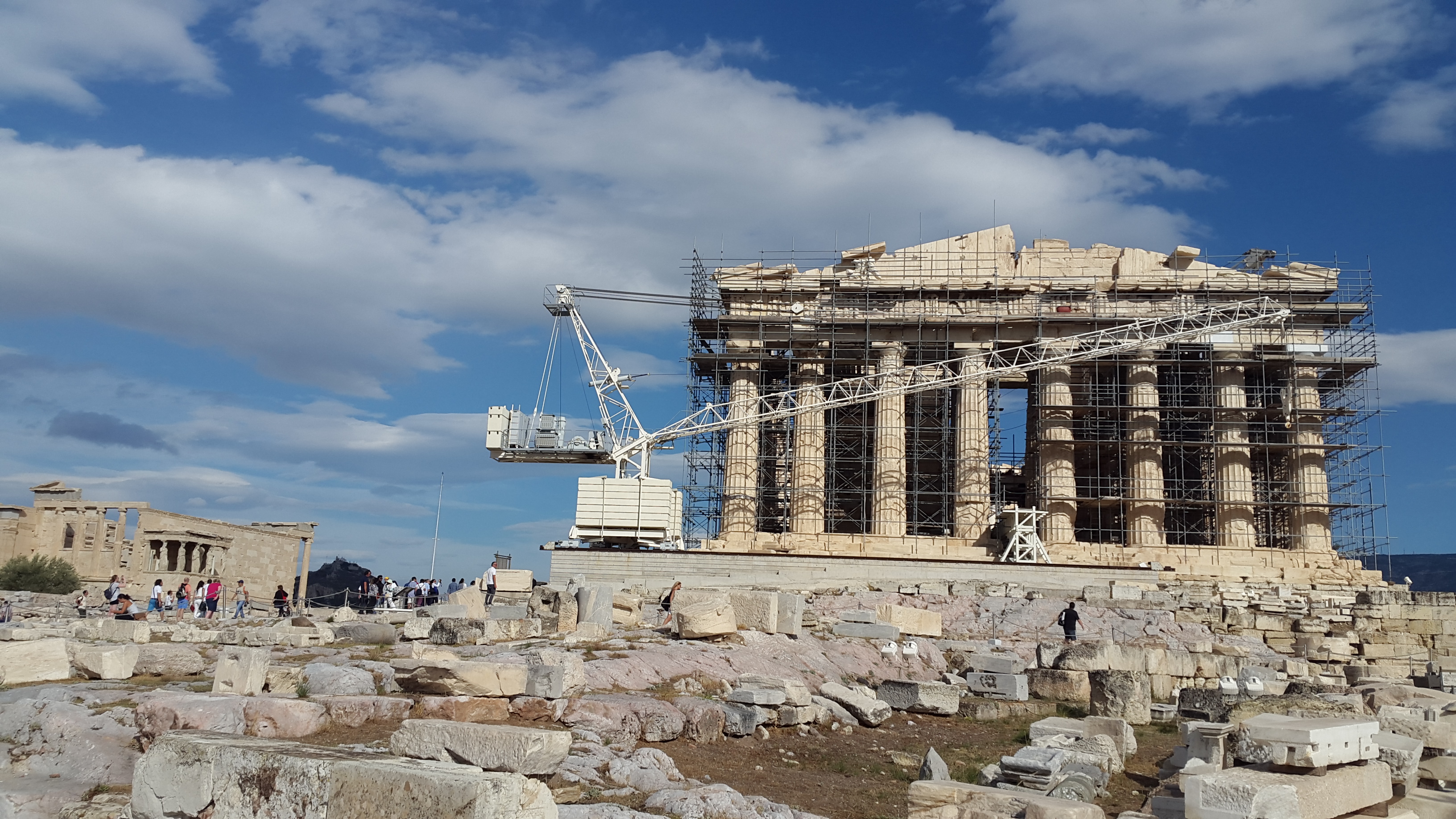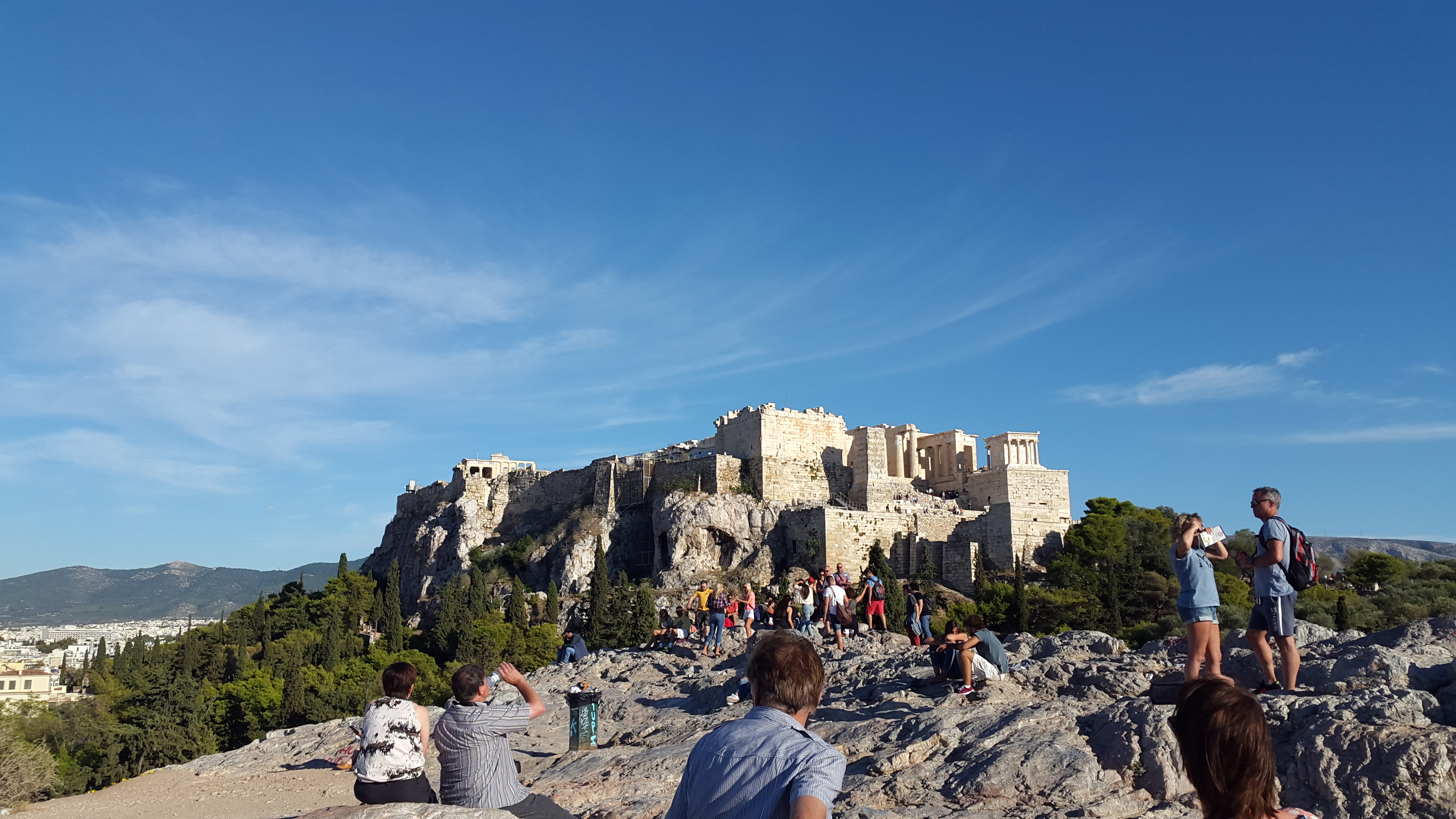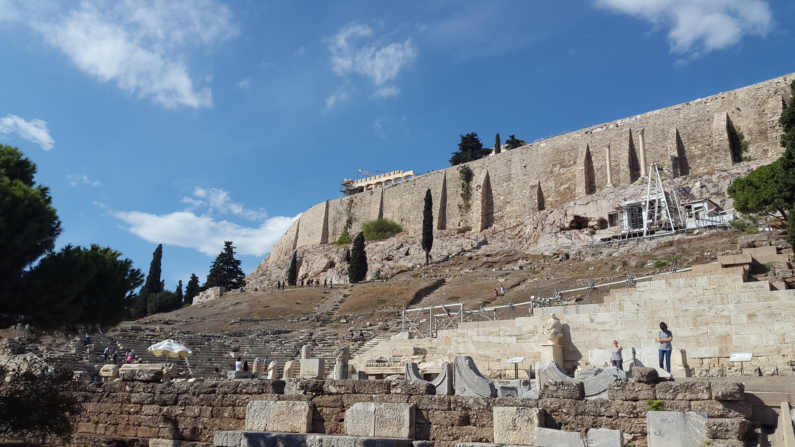 Auf dem Gelände gibt es weit mehr zu erkunden als das Parthenon. Direkt hinter dem Eingang am Akropolismuseum stößt man auf das große Theater des Dyonisos. Von hier ging es weiter auf den Ostrundkurs unterhalb der Akropolis. Der Weg wird gesäumt von diversen Höhlen, die alle Göttern gewidmet sind. Schon hier hat man schöne Aussichten auf die Stadt. Im Westen angekommen geht es dann hinauf zu den Propylaen, dem Tempel der Athene Nike, dem Erechtheion und natürlich dem großen Parthenon. Vieles wird weiterhin restauriert und neu aufgebaut, aber es ist schon sehr beeindruckend, was hier in der Vergangenheit errichtet wurde. Zudem hat man von dort einen unglaublichen Blick auf Athen und Piräus.