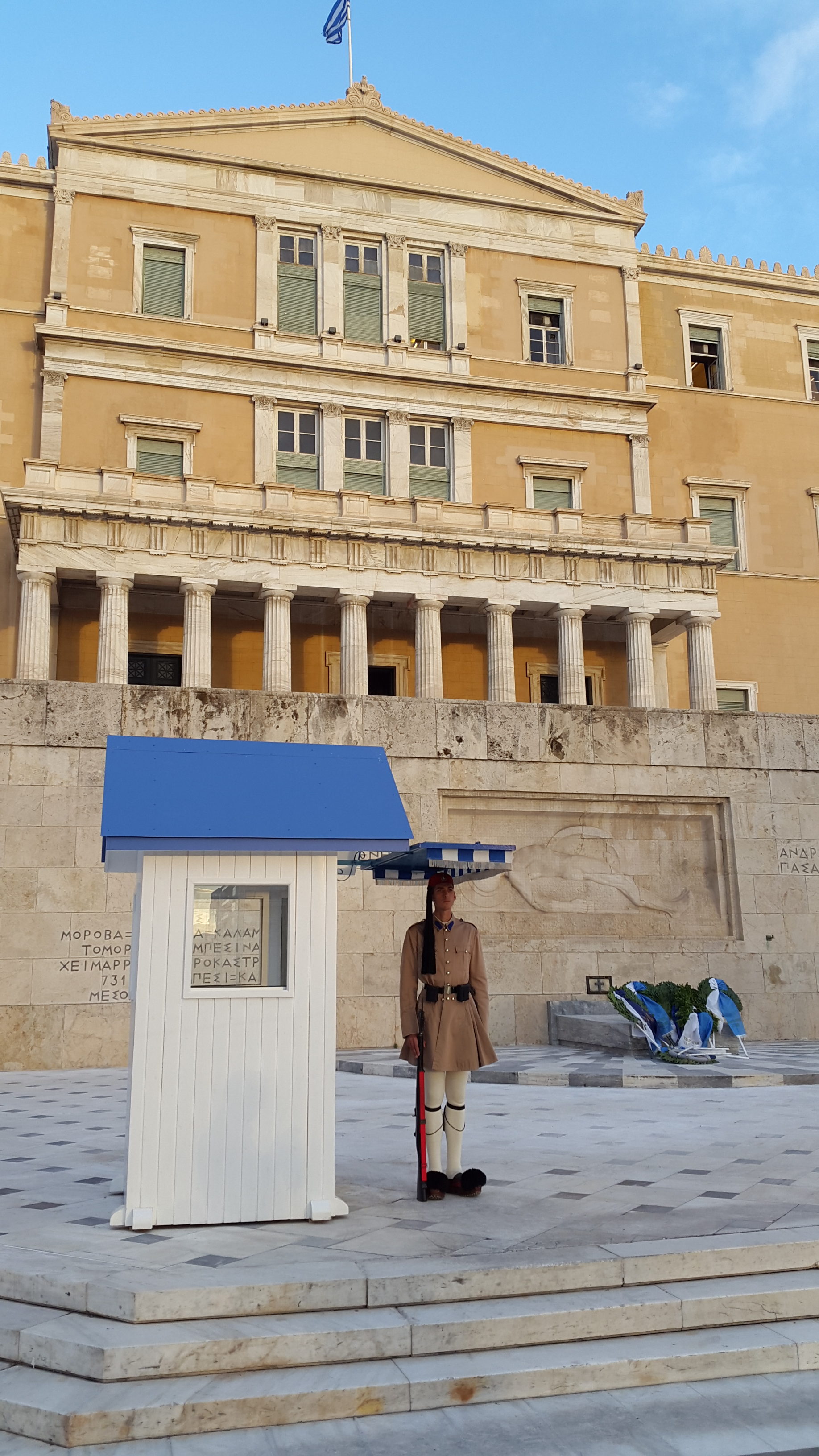 Von dort ist es wieder nur ein kurzer Spaziergang zum Syntagma Platz und dem Präsidentenpalast. Direkt davor sind zwei Wachen, die alle halbe Stunde einen Wachwechsel mit einer kuriosen Schrittfolge vollführen. Da wir nun wieder in der Altstadt angekommen waren, entschieden wir uns nach Plaka zu laufen und in einem der zahlreichen Restaurants an den Plaka Stufen zu essen. Das Ambiente ist dort wunderschön und das Essen sehr gut, auch wenn die Preise ein wenig höher sind als in anderen Gegenden.