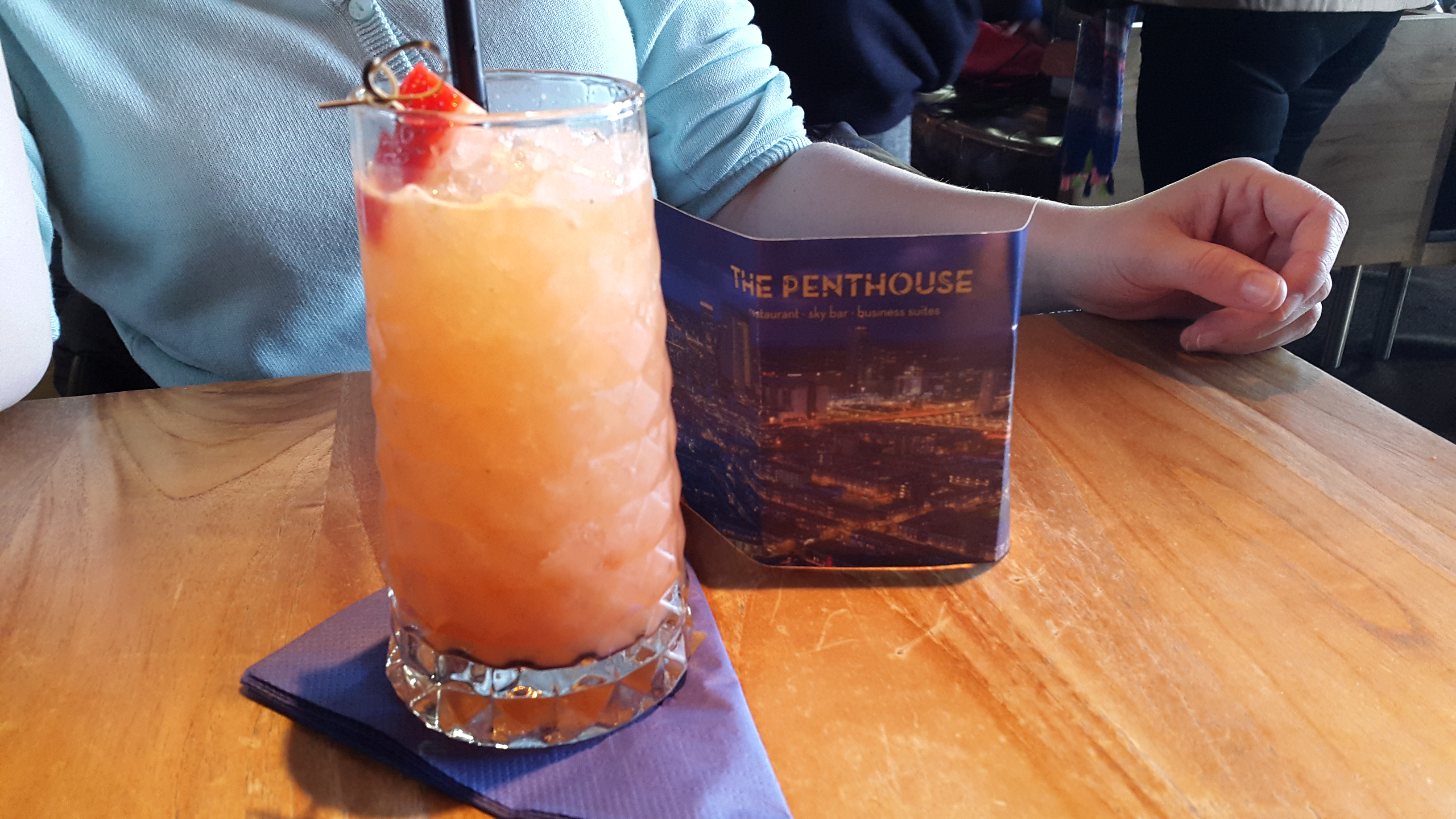 - Ein Highlight im wahrsten Sinne des Wortes ist das höchste Haus der Stadt. Auf 135m Höhe erwartet einem das Penthouse. Ein Restaurant und Bar in luftiger Höhe, mit Aussichtsbalkonen. Die Fahrt nach oben kostet 9 Euro, jedoch ist ein Getränk kostenlos mit dabei. Wir hatten uns für den „Signature Cocktail“ entschieden: Fruchtig, lecker und perfekt für den Sonnenuntergang. Vom 42.Stock aus kann man Rotterdam, das Meer und bis nach Amsterdam sehen.