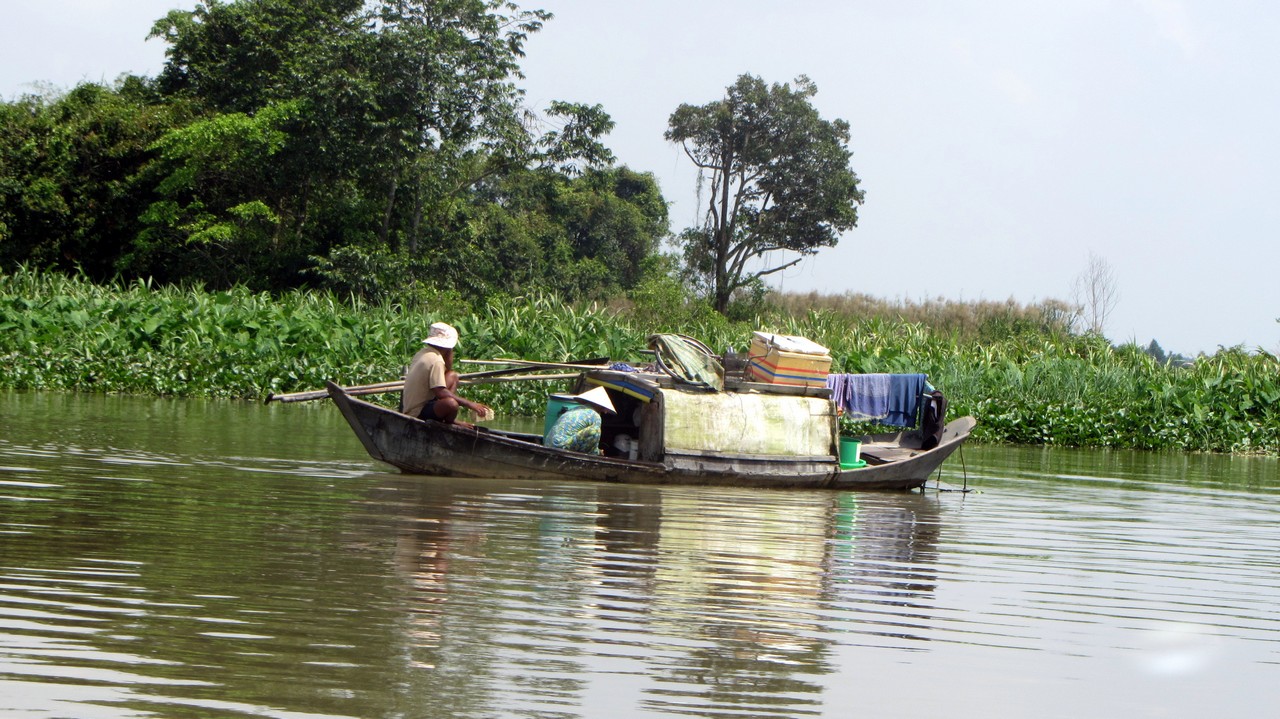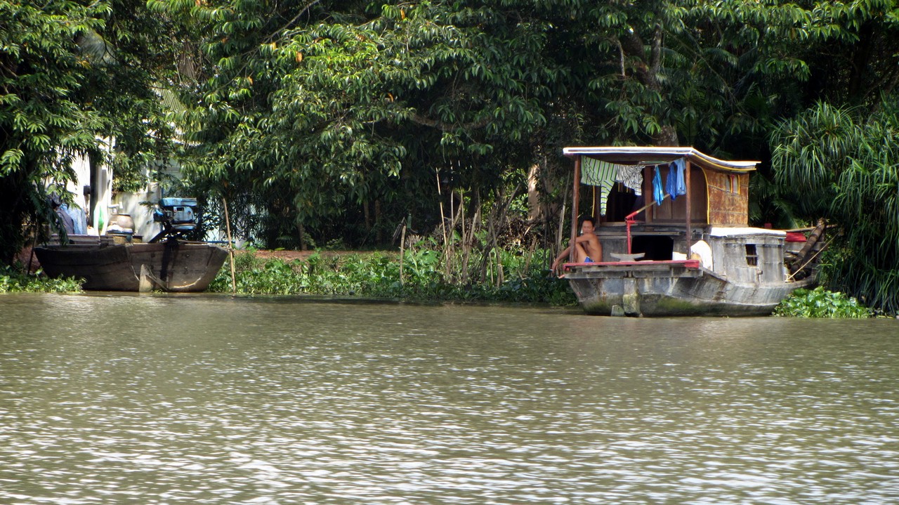 Eigentlich sollte ich um viertel vor acht abgeholt werden. Kaum eine Stunde später kam auch schon der Bus, nur um 50m weiter zum Ufer des Saigon zu fahren. Dort sind wir wieder ausgestiegen um eine knappe weitere Stunde auf das Boot zu warten. Da ich bei keiner des bekannten Agenturen gebucht hatte, wusste ich auch nicht was mich erwartet. Aber eins vor weg, es war gut und hat sich gelohnt. Auch die Kombination aus Hinweg per Boot und zurück im Bus. Als wir endlich an Board konnten, sind wir mit dem kleinen Boot nach Norden gefahren und gut 2 Stunden dem Flusslauf gefolgt.