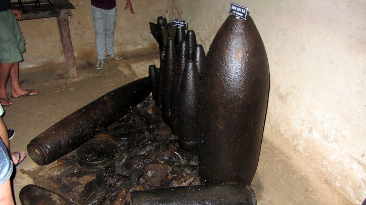 Bei der Anlage haben wir uns zuerst historische Waffen und anschließend einen Film über den Krieg und die heldenhaften Vietnamesen angeschaut, die von einem Feind angegriffen wurden, der doch eigentlich mit dem Land gar nichts anfangen konnte usw.