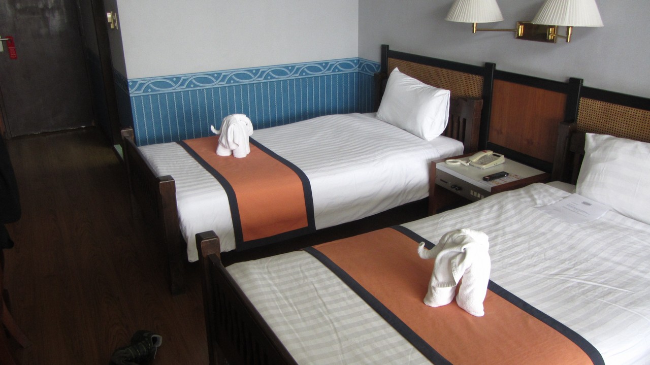 Von Hanoi bin ich mit Air Asia (59 $+Gepäck) zum alten großen Flughafen Don Mueang im Norden Bangkoks geflogen. Dieser wurde reaktiviert, nachdem es beim Neuen Probleme nach der Eröffnung gab. Für mich war das praktisch, denn der Flughafen liegt etwas näher am Zentrum. Die Einreise ging sehr schnell, Rucksack war auch direkt auf dem Band und eigentlich wollte ich ein Taxi nehmen. Ich hatte dennoch mal an der Information nachgefragt was die meinen. Die hilfsbereiten Damen empfahlen mir den Bus zu nehmen. Ok, warum nicht. Taxi sollte wohl um die 250B kosten, wie teuer ein Busticket wäre, habe ich nicht herausgefunden. Mit Bus #59 ging es in Richtung Stadt. Keine Klimaanlage aber dafür eine Stadtrundfahrt. Der “Schaffner” hat mir einen Papierschnipsel in die Hand gedrückt und irgendetwas auf Thai gesagt. Nach einer Stunde Fahrt habe ich dann auch endlich auf der Karte die Strasse gefunden, indem der Bus gerade war. Mit im Bus saßen auch zwei Engländer, die ich an der Halong Bay getroffen hatte. Südostasien ist klein…