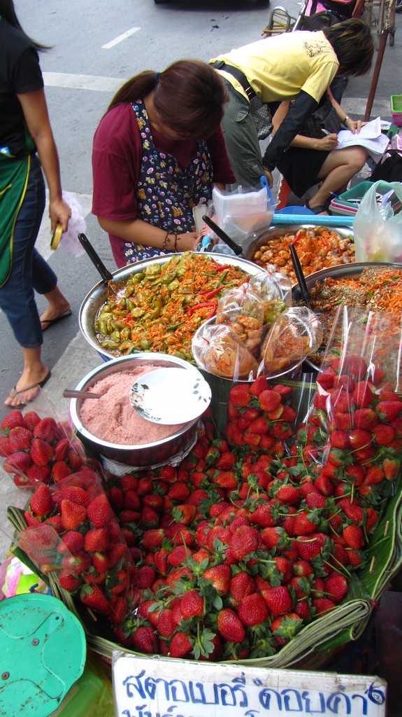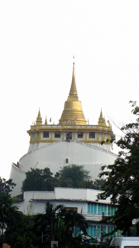 Nach dem Film war es schon dunkel und ich bin zur BTS um ein paar Stationen weiter zu fahren, in der Hoffnung, dass der Verkehr dort etwas mehr fließt. Gut, die Skytrain war auch propenvoll, aber irgendwie bin ich noch reingekommen. Die letzten paar Kilometer bin ich dann wieder mit dem Taxi bis zum Hotel gefahren. Eigentlich wollte ich heute Abend zur Khao San Road, aber derzeit ist die Vorbereitung für das Lichterfest (leider erst nächste Woche) und daher bin ich lieber noch einmal zum Golden Mount gegangen. Drumherum sind dort alle Strassen mit Marktständen voll und es findet schließlich nur einmal im Jahr statt.