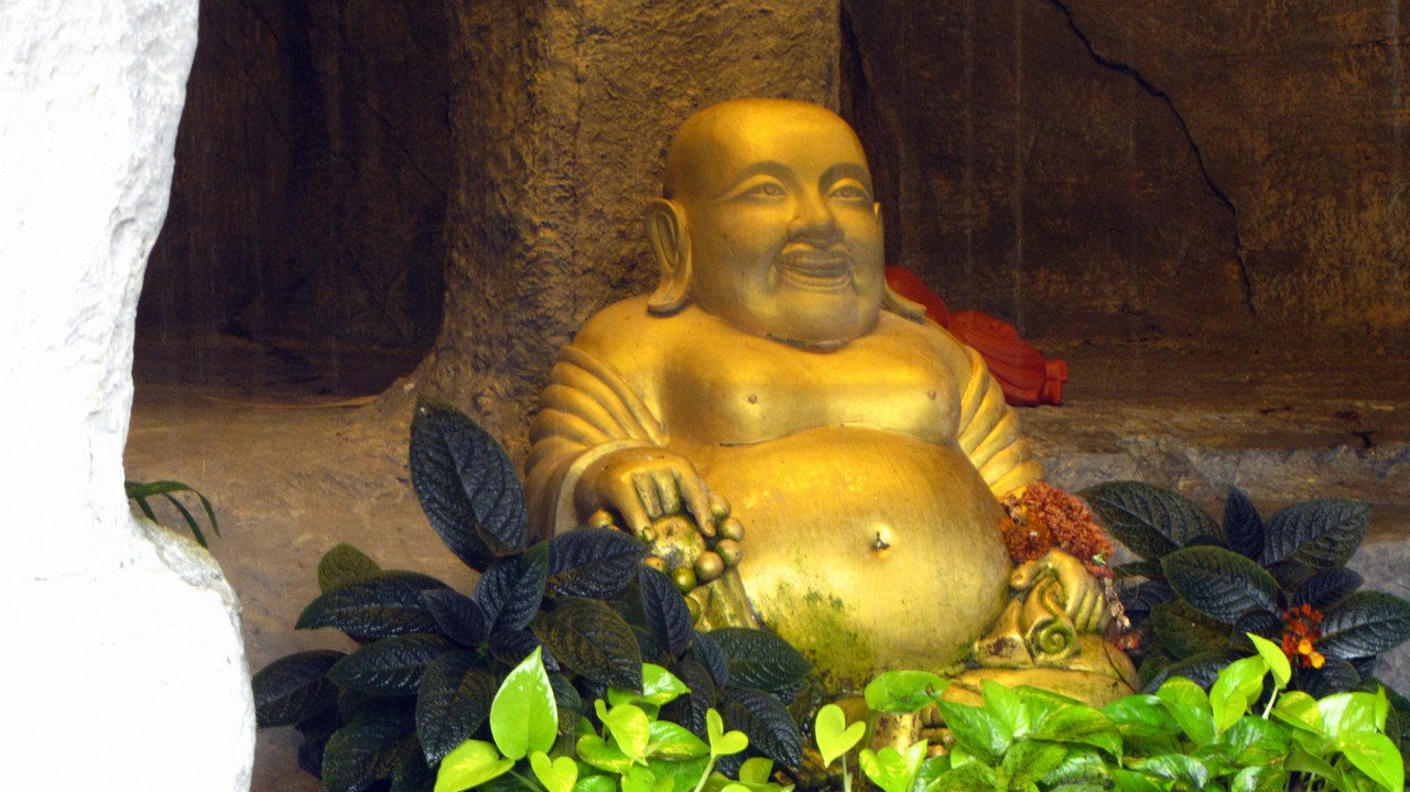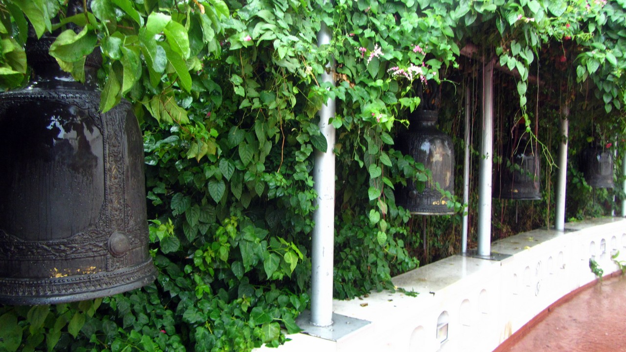 Auf dem Weg hängen viele große Glocken die dauernd geläutet werden und von unten dröhnt der Lärm der “Kirmes”. Oben angekommen, betet man kurz, legt seine Blumen nieder und geht dann ins Allerheiligste, angeblich sollen dort Reliquien von Buddha sein. Danach geht es aufs Dach und man umrundet die verhüllte Pagode, bevor es wieder nach unten geht.
