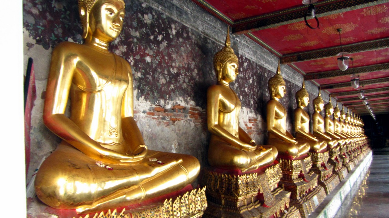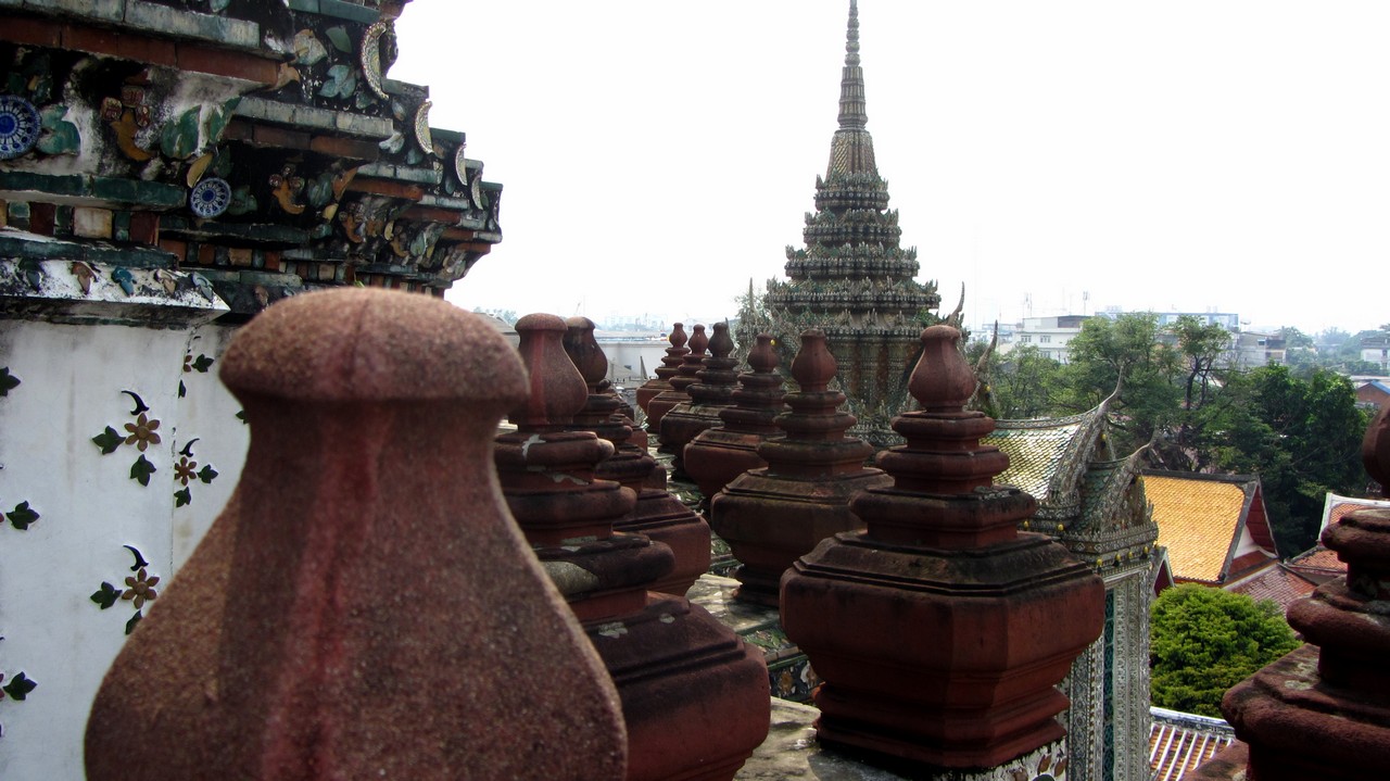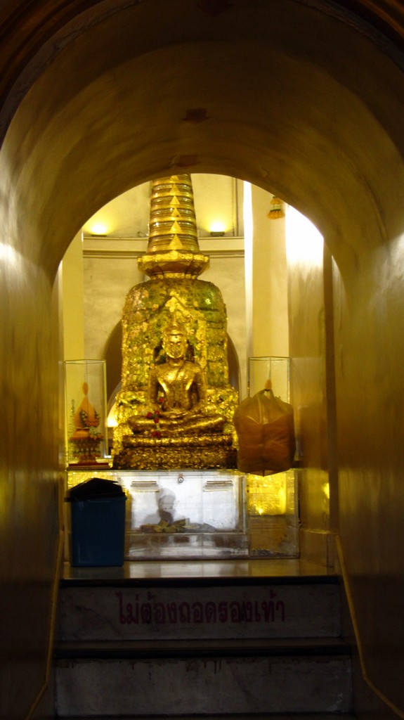 Über die Stufen nach oben, kamen Bäche entgegen. Aber die Aussicht war super! 360° über diese riesige Stadt! Nachdem ich mir alles in Ruhe angeschaut hatte, bin ich weiter zum Wat Suthat. Ein unheimlich schöner, bunter Tempel mit einem gigantischen sitzenden Buddha. Sehr beeindruckend.