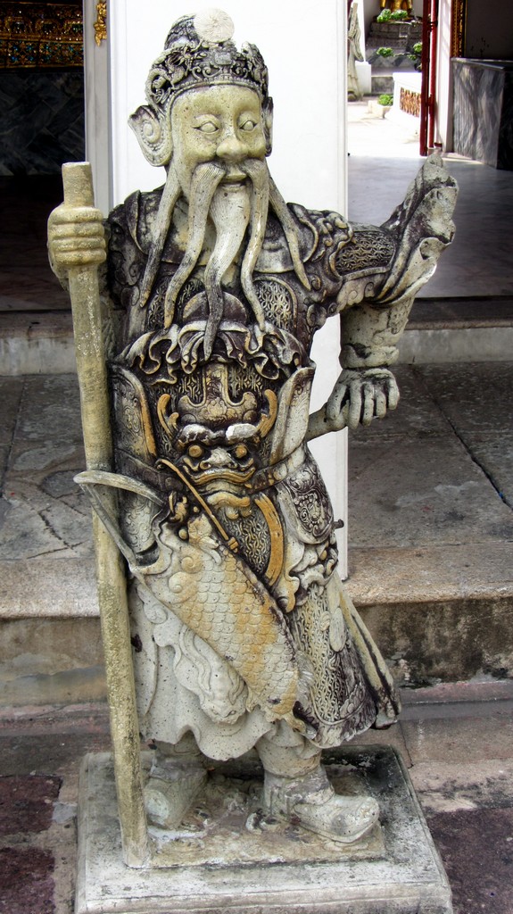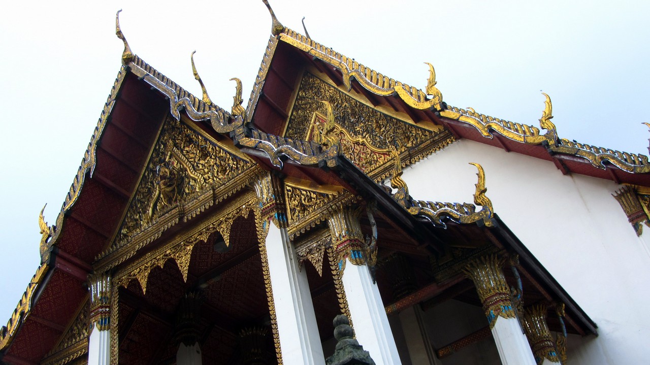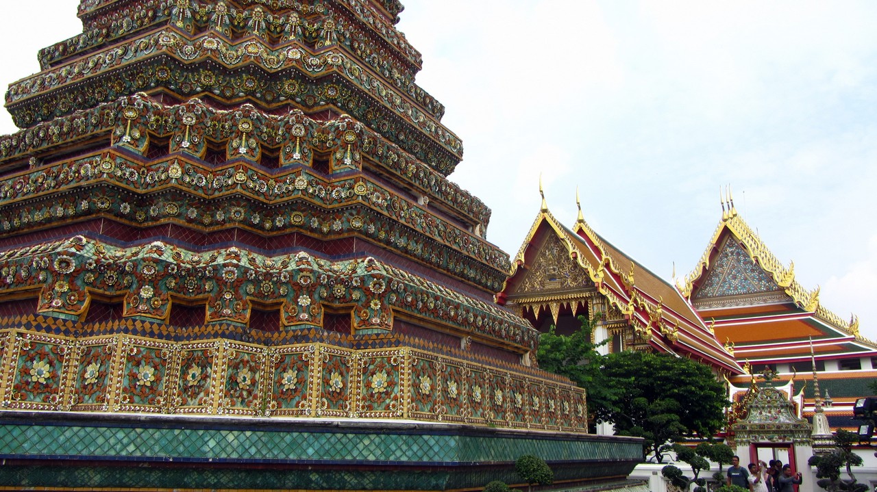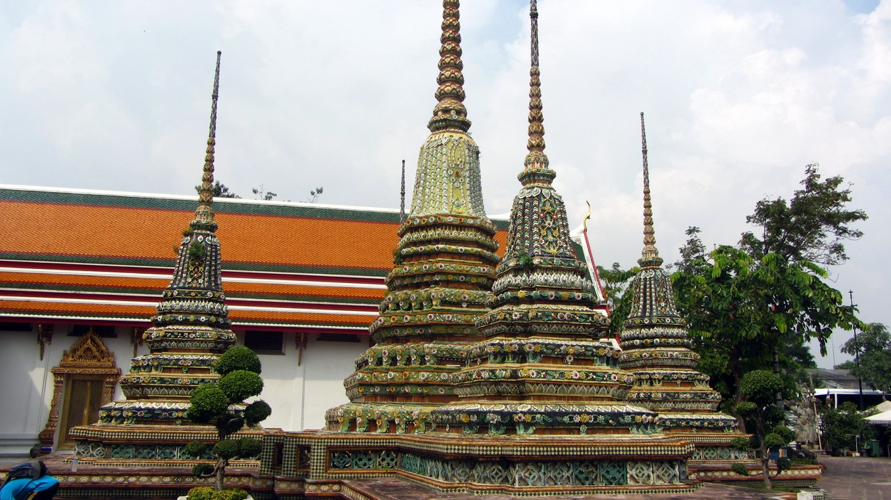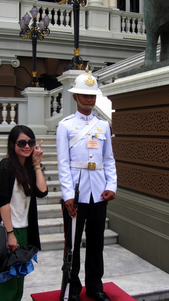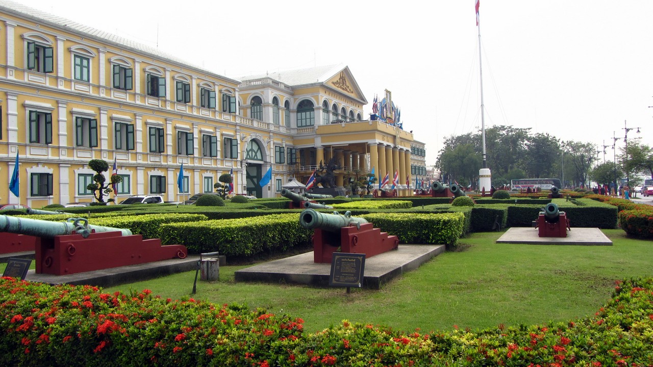 Ich bin an einem großen Flohmarkt vorbei gekommen, auf dem es nun wirklich alles erdenkliche gab. Dann kam ich zum Lak Muang, in dem der Schutzgeist von Bangkok wohnt. Ein kleinerer, aber ganz netter Tempel. Gegenüber liegt das Gelände von Wat Kaeo und dem Grand Palace, auch gut daran zu erkennen, dass es von Reisebussen und Tuktuks umlagert ist. Drinnen ist vor dem Eingang die Hölle los. Viele sind nicht passend angezogen und werden rigoros wieder rausgeschickt. Der Eintritt kostet 400 Baht für Ausländer. Dafür kann man diese Anlage und den Vimanmek Palast weiter nördlich besichtigen.