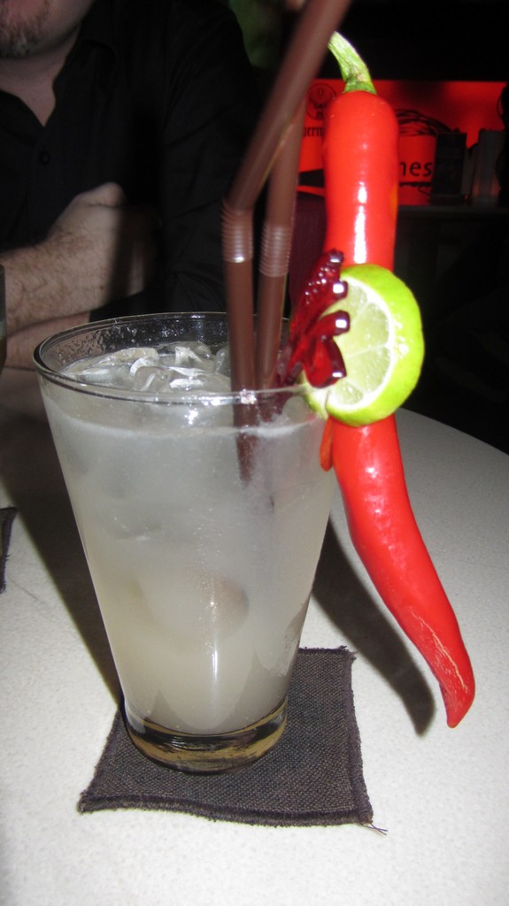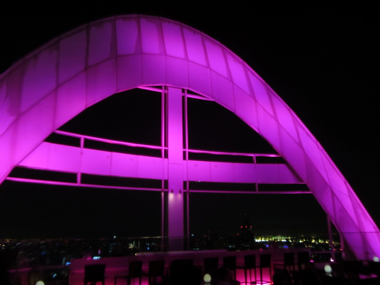 Für den ersten Abend hatte ich mich mit einem ehemaligen Kollegen verabredet. Wir sind erst im Green Garden thailändisch Essen gewesen, das war schon mal sehr lecker, und anschließend rund um die Sukhumvit Road einen Absacker trinken gewesen. Erst in Charlies Bar ein paar Gin Tonic, dann in “The Nest”, einer Rooftopbar, die nicht wirklich hoch ist. Nur im 9.Stockwerk, aber dank Bachlauf und Beach Atmosphäre trotzdem einen Abstecher wert, hatten wir doch gute Cocktails. Zuletzt waren wir noch in der Red Skybar des Centara Grand – auf dem 55.Stockwerk. Absolut atemberaubend.