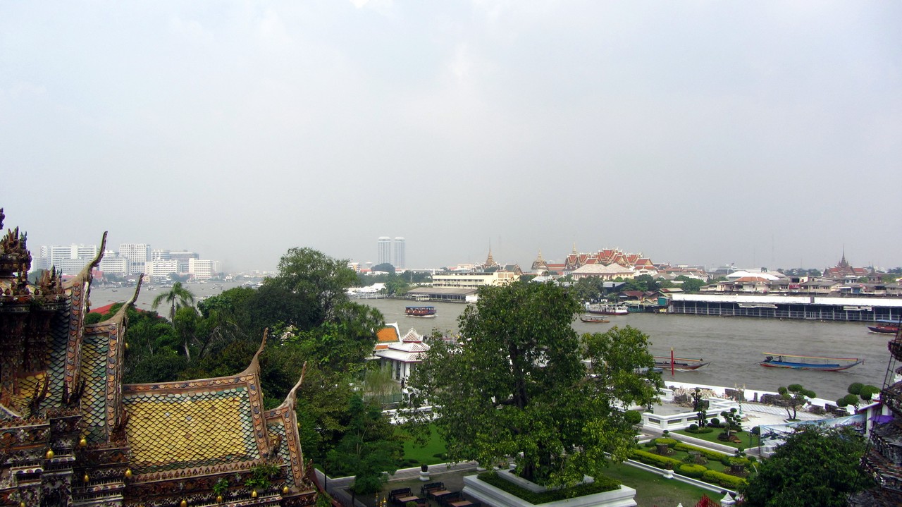 Nachdem ich mir dort alles angeschaut hatte bin ich entlang vieler Essensstände zum Pier, um mit der Fähre für 3 Baht auf die andere Seite zu Wat Arun zu fahren. Dort kostet der Eintritt eigentlich 50 Baht, geht man aber nach dem Fähranleger direkt nach links kommt man kostenlos rein.