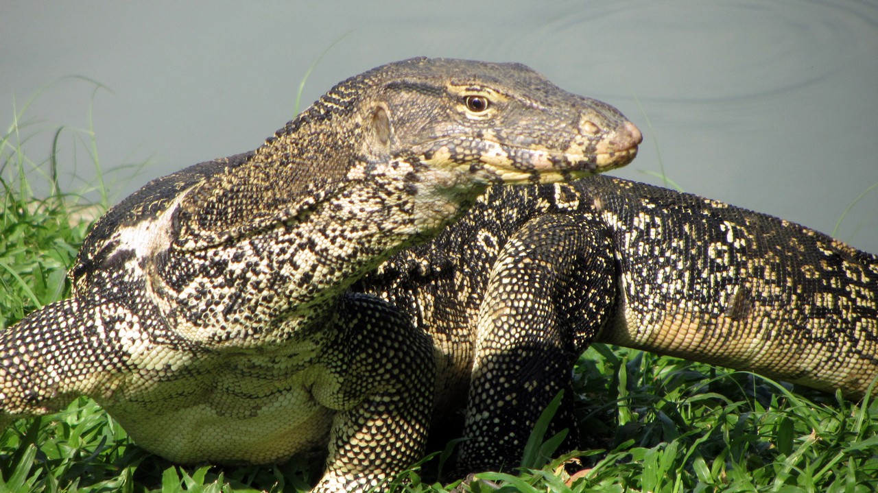 Nachdem ich die Gegend etwas erkundet hatte, bin ich mit dem Expressboot zur Riverside Mall gefahren. Aber was für eine Enttäuschung! Sieht zwar toll aus, aber drinnen ist gähnende Leere. Also direkt weiter an der Hauptpost (Baustelle!) vorbei zur Silom Strasse. Die bin ich dann einmal ganz abgelaufen bis zum Lumpinipark. DIe grüne Lunge der Stadt. Ich hab ich in den Schatten gesetzt und in meinem Stadtführer geblättert. Da stand dann auch, dass in dem Park große Warane mit bis zu 1m länge herumlaufen. Kaum hatte ich das gesehen, raschelte es im Gebüsch hinter mir und es war..natürlich ein Waran. Noch dazu ein stattliches Exemplar.