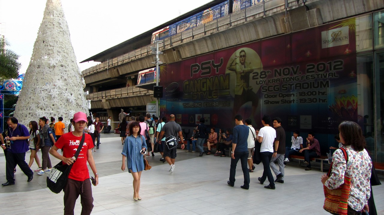 Anschließend bin ich ins MBK, Siam Discovery und Siam Paragon Center gegangen. Gekauft habe ich nicht viel, die Preise sind in etwa wie in Deutschland (MBK mit den Fälschungen natürlich ausgenommen). Aber auf dem Vorplatz war wieder einmal Gangnam Style angesagt. Bangkok ist eh im großen Psy Fieber. Nächste Woche tritt er beim Lichterfest in der Stadt auf.