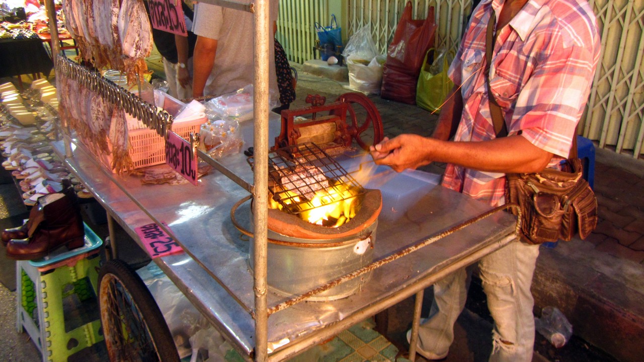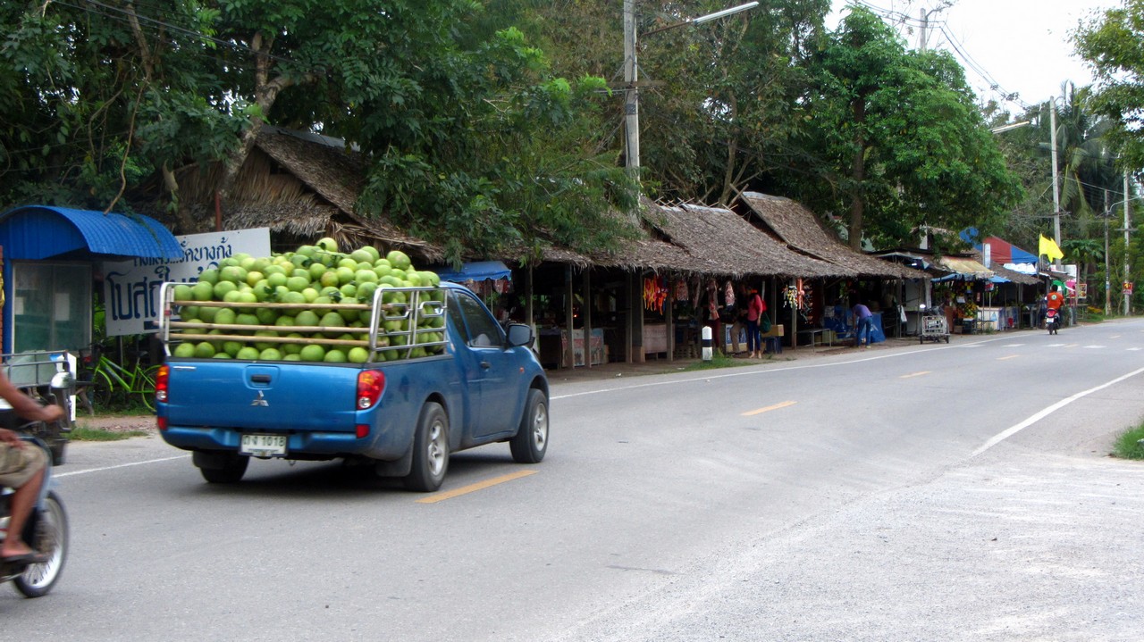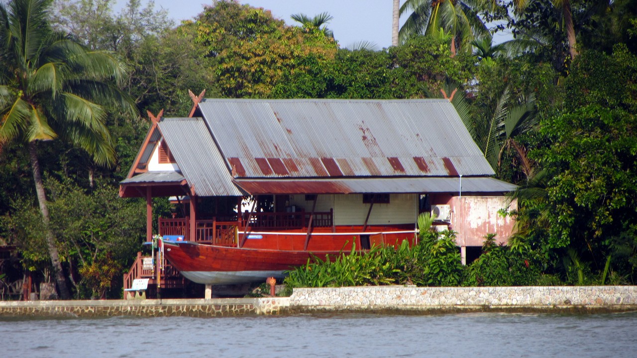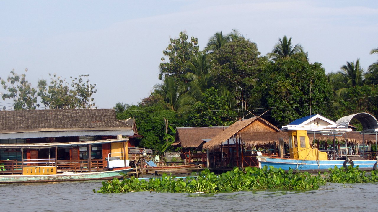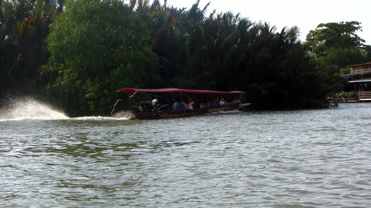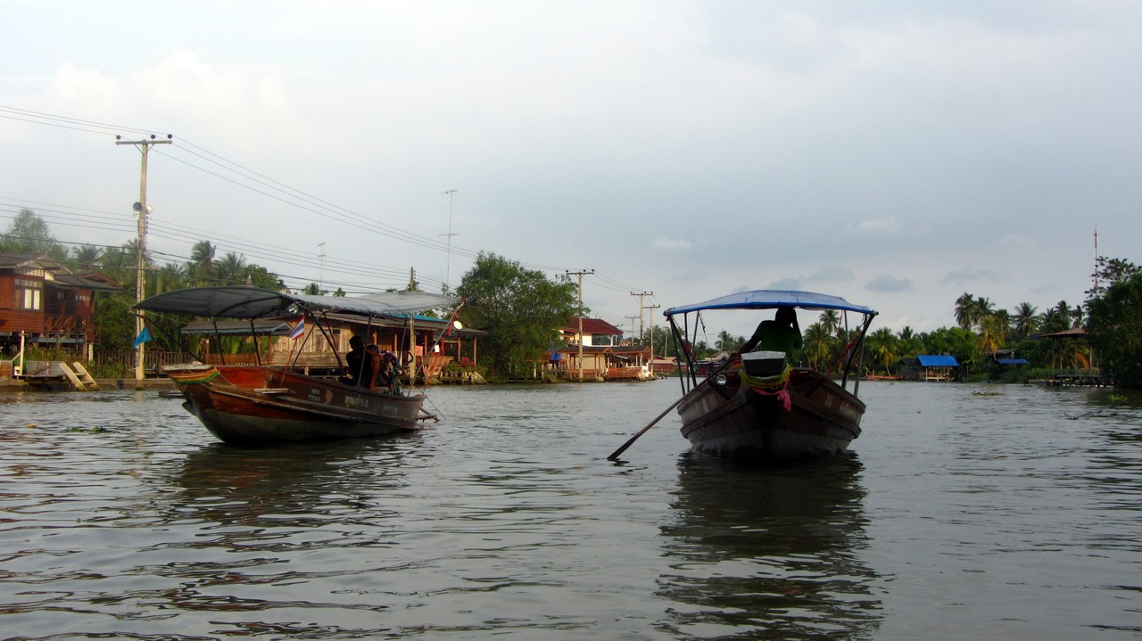 Am letzten Tag meiner Reise sind wir nach Amphawa im Südwesten von Bangkok gefahren. An dem Morgen war es in der Stadt regnerisch, aber in Amphawa sonnig bei drückenden 38 Grad. Die Stadt ist bekannt für einen „floating market“, der aber kaum von Touristen besucht wird, dafür aber sehr beliebt bei den Einheimischen ist.