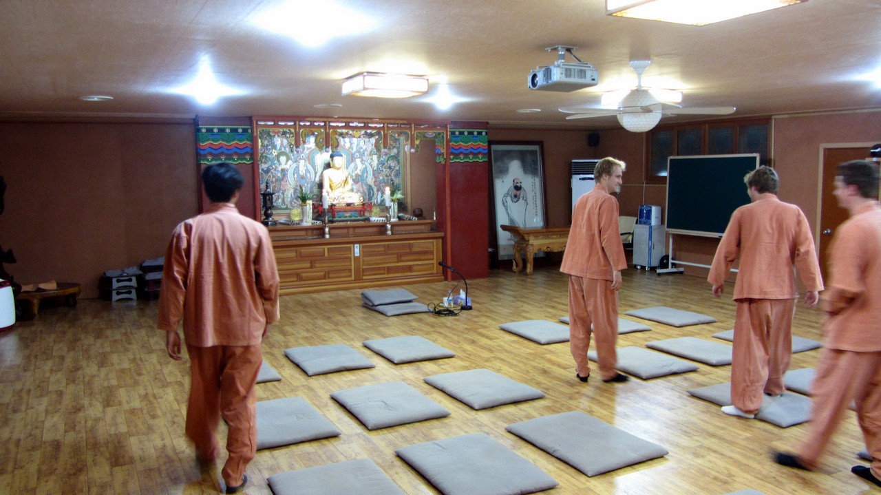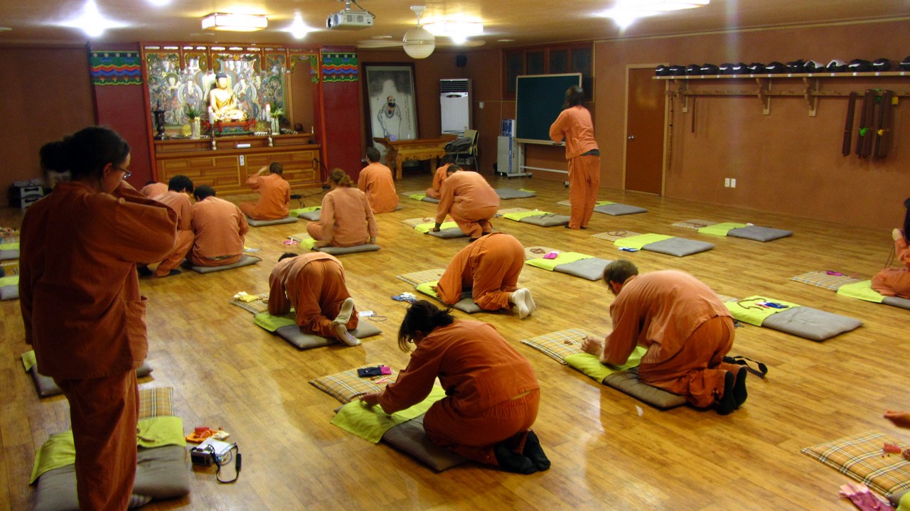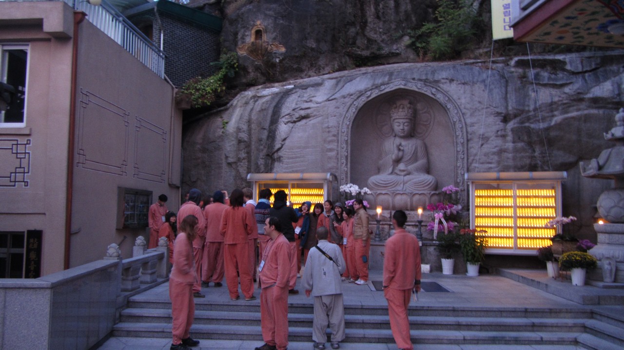 Nachdem wir alle neue Kleidung bekommen hatten, ging das Programm los. Es wurde viel über Buddhismus erklärt, es gab eine doch recht anstrengende Bet-Zeremonie mit 108 mal Aufstehen und Hinknien, einer Tour durch die Klosteranlagen und Meditationen. Das Programm läuft unter dem Namen „Laying down my mind“ und das traf sehr gut zu. Geführt wurden wir durch die Nonne Je-Ha Lee. Sie hat das richtig toll gemacht. Viel Wissen vermittelt und das ganze mit Witz garniert.