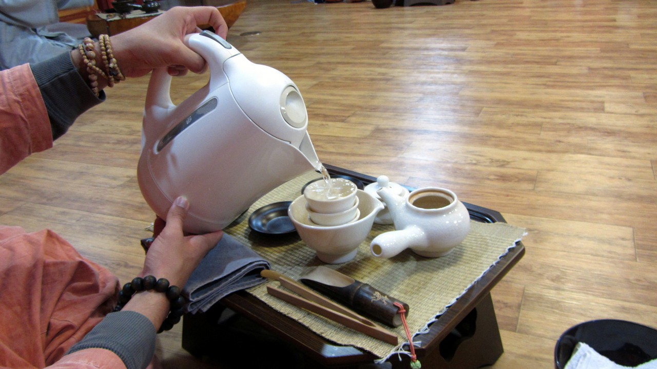 Den Abschluss des Aufenthalts machte eine Teezeremonie, die natürlich ganz spezielle Regeln hatte.